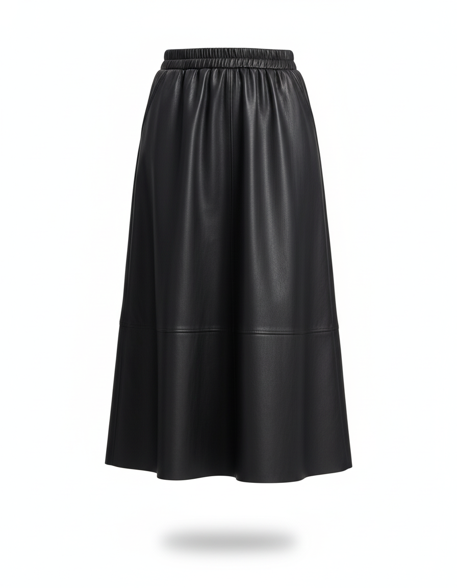 Adoptez un look chic et moderne avec notre jupe midi en cuir noir.