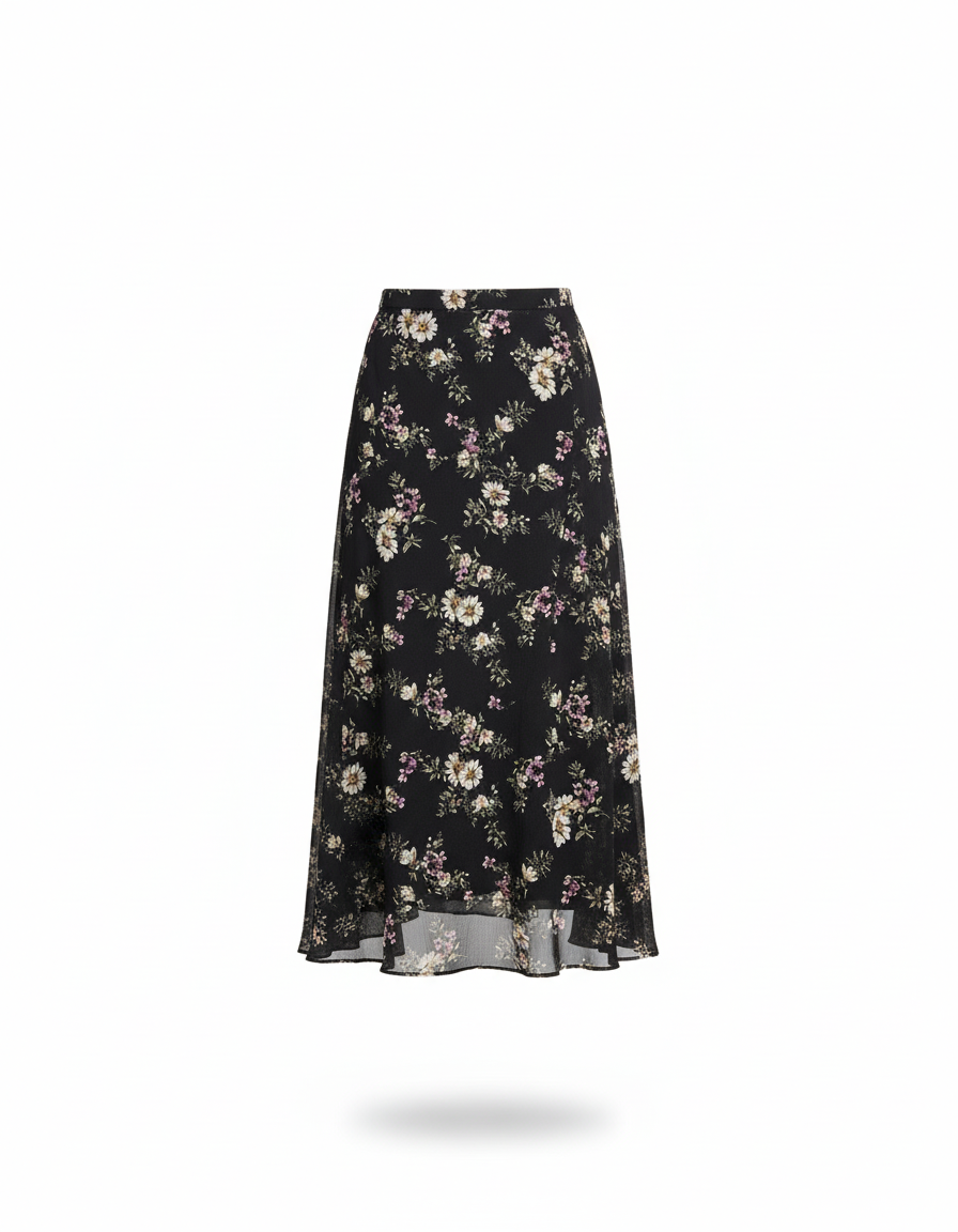 Jupe Fleurie Midi : Modèle Noir à Motifs Floraux