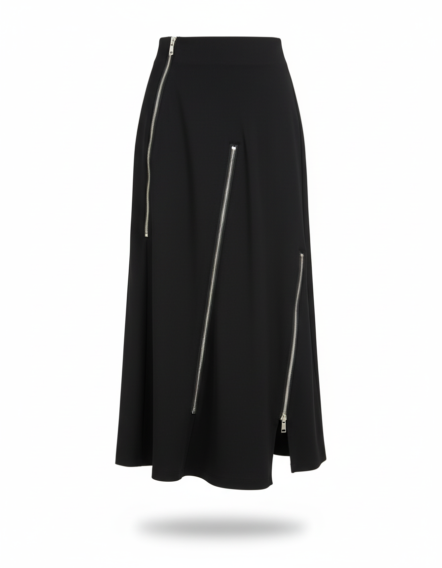 Jupe Midi Noire à Zippers, Jupe.Midi