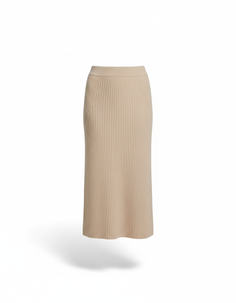 La Jupe Midi Beige Côtelée : Polyvalence et Raffinement