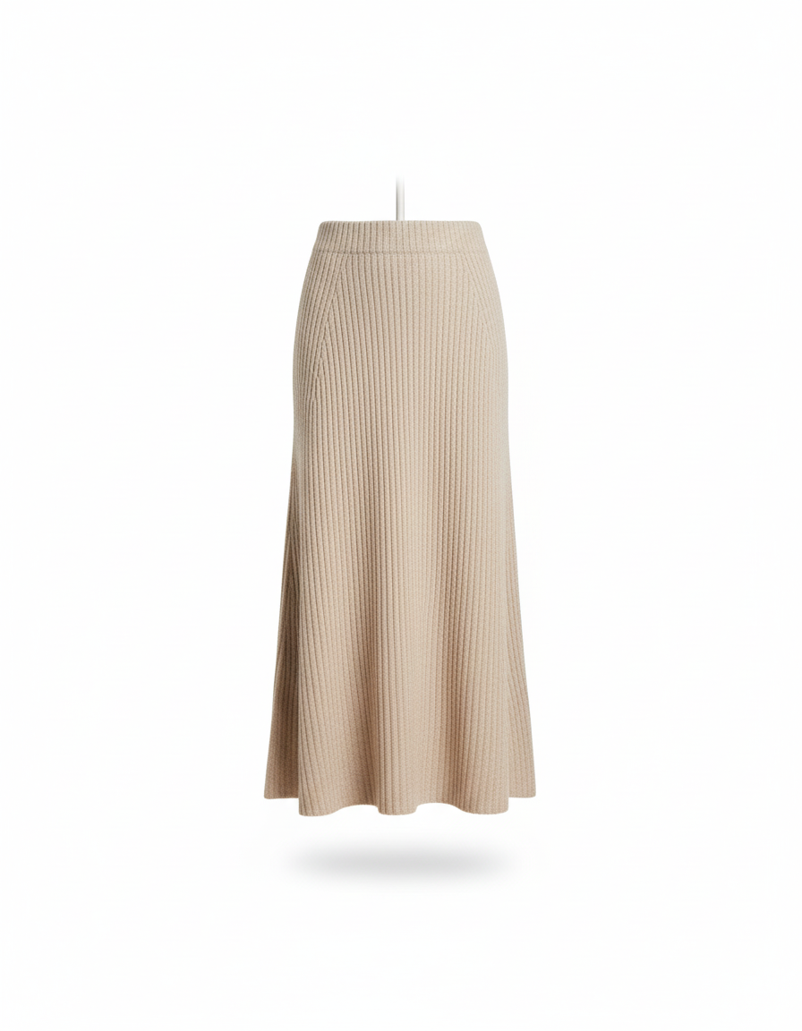 L'Élégance Sans Effort : Votre Jupe Midi Beige en Maille Côtelée