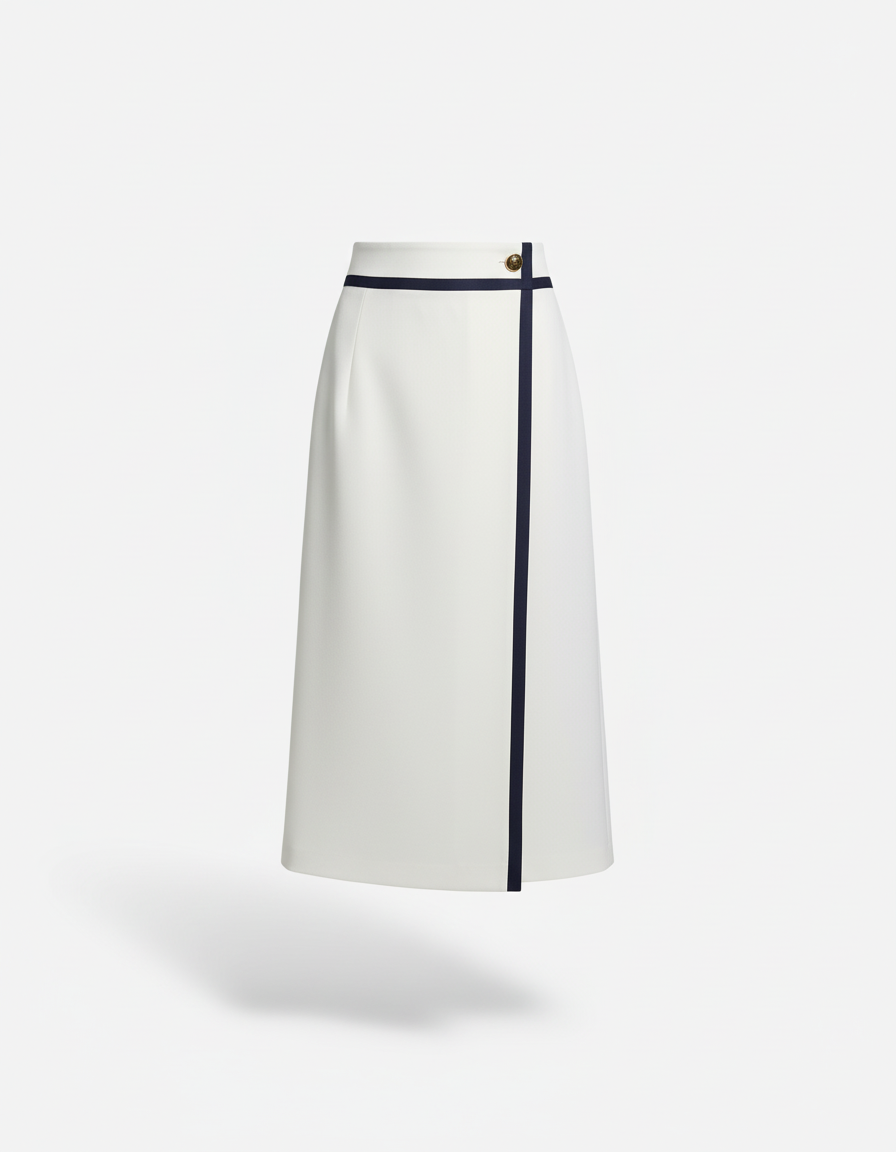 La Jupe Midi Blanche Bordure Marine : L'Élégance Redéfinie