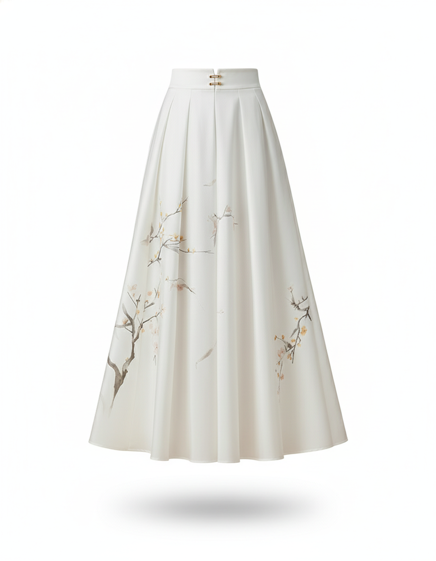 La Jupe Midi Blanche Fleurie Élégante est une invitation à la sophistication, conçue pour sublimer chaque silhouette avec une grâce naturelle. Confectionnée dans un satin de haute qualité, elle offre un tombé évasé d'une fluidité remarquable, qui danse avec légèreté à chacun de vos pas. Son motif délicat de branches fleuries et d'oiseaux, inspiré de l'art asiatique, est une ode à la poésie et à la sérénité. Cette pièce d'exception, d'un blanc pur et lumineux, est l'incarnation même du chic intemporel, faisant d'elle le choix parfait pour les cérémonies, mariages et événements où l'élégance est de mise.