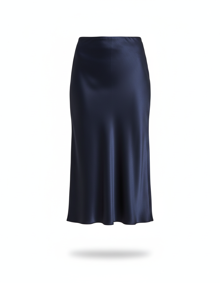 L'Élégance Sans Effort : Votre Jupe Midi Satin Marine Indispensable