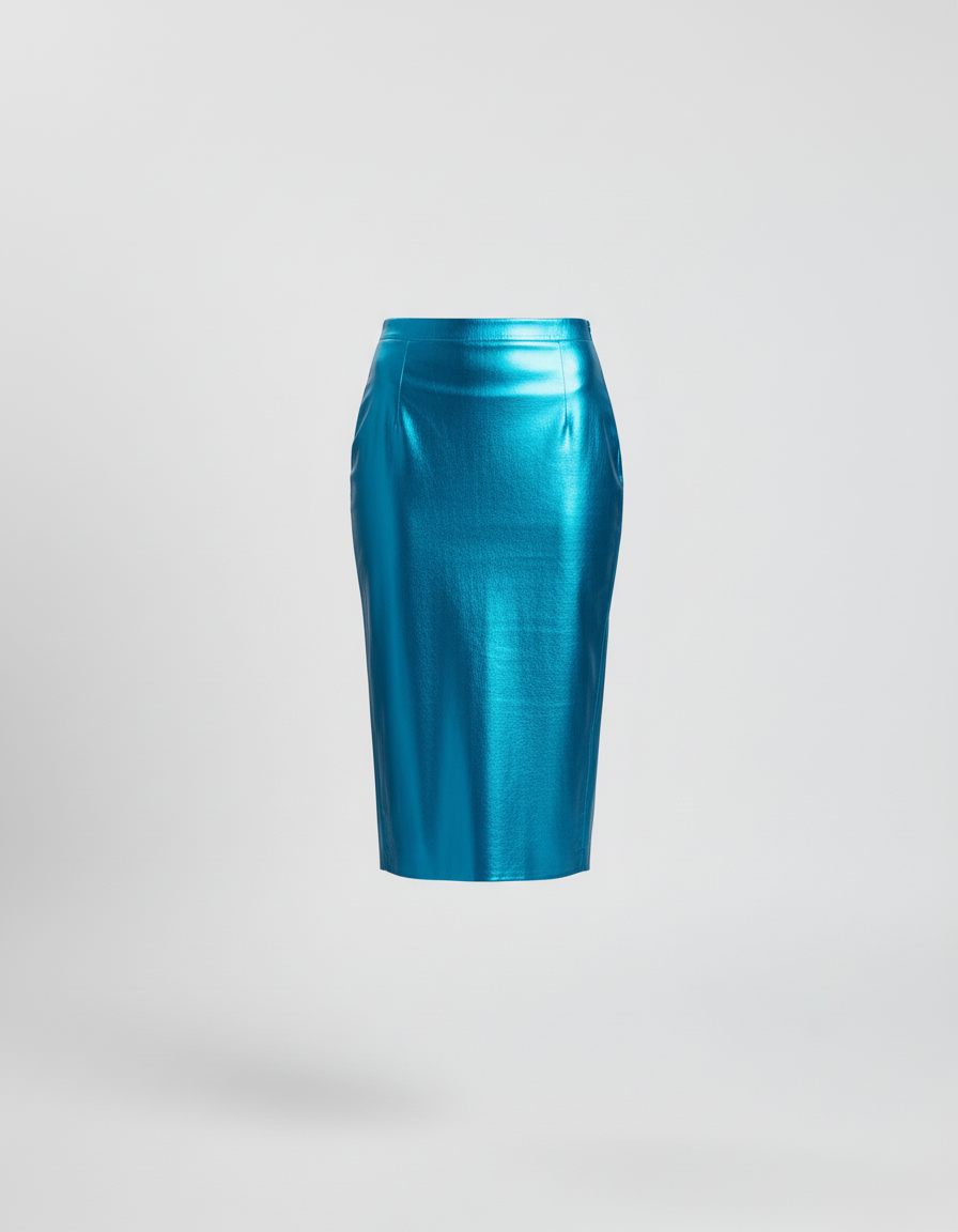 Jupe Midi Bleue Métallisée Chic : Votre Alliée pour un Style Inoubliable