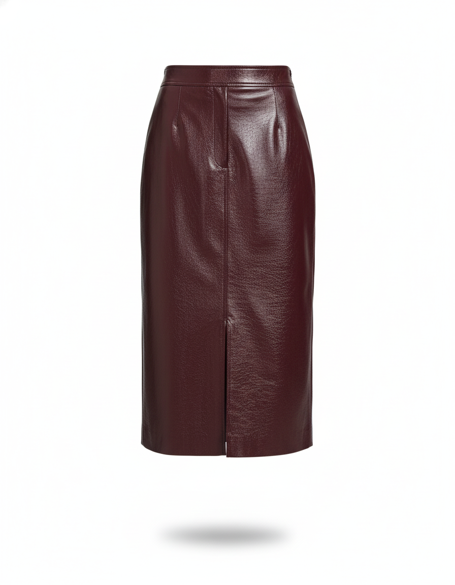 Cette jupe n'est pas qu'un vêtement, c'est une déclaration de style. Idéale pour la professionnelle dynamique qui souhaite briser la monotonie sans sacrifier l'élégance, ou pour l'esthète qui apprécie les détails qui font la différence. Le confort de son simili cuir innovant et la liberté de mouvement offerte par sa fente discrète à l'avant en font une alliée du quotidien, aussi pratique qu'esthétique. Associez-la à un chemisier en soie pour une réunion importante ou à un pull en maille fine pour un look plus décontracté mais toujours distingué. La Jupe Midi Bordeaux Brillante Élégante est la promesse d'une élégance intemporelle, réinventée.