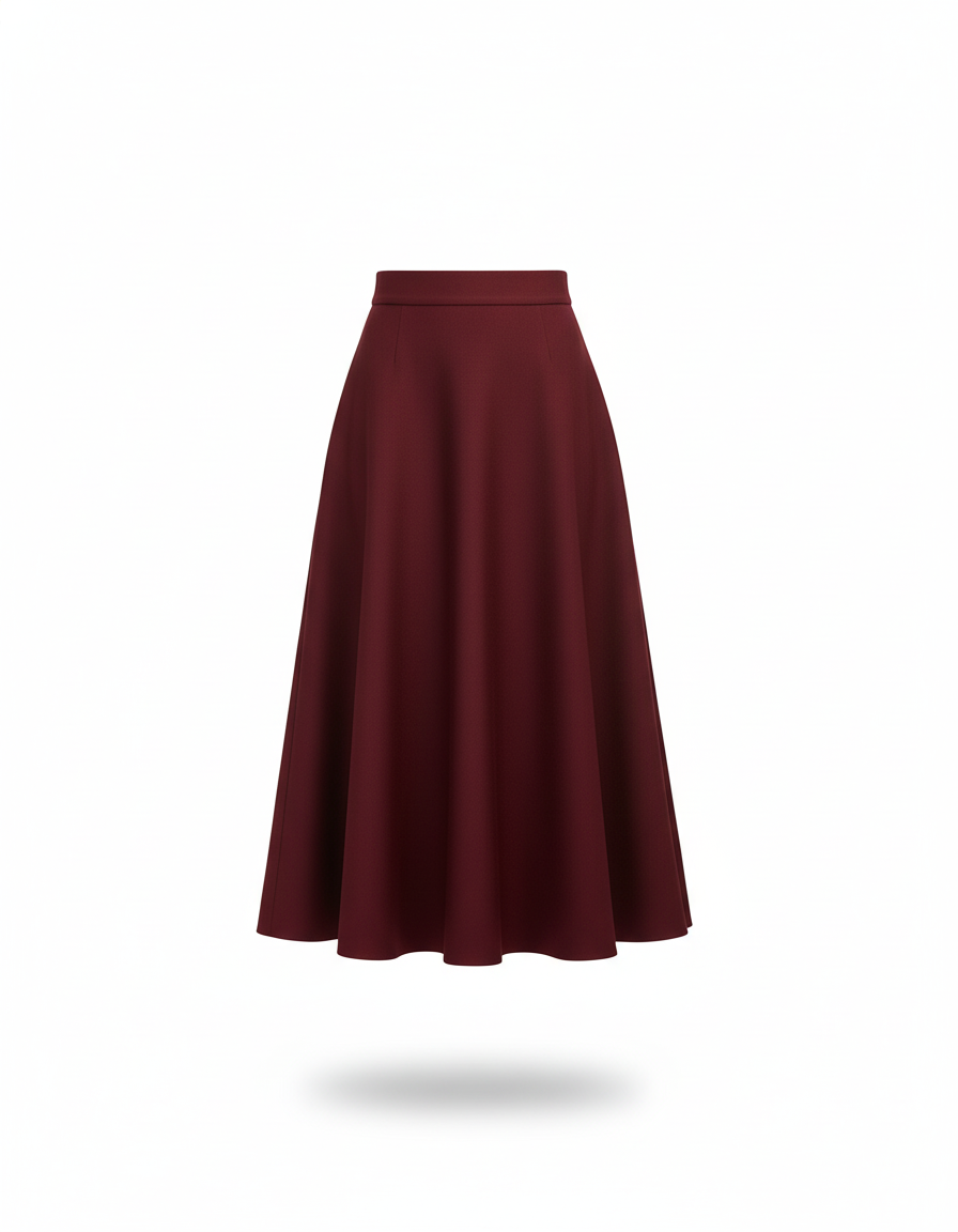Adoptez un look sophistiqué et intemporel avec notre jupe midi bordeaux, conçue pour flatter toutes les silhouettes.