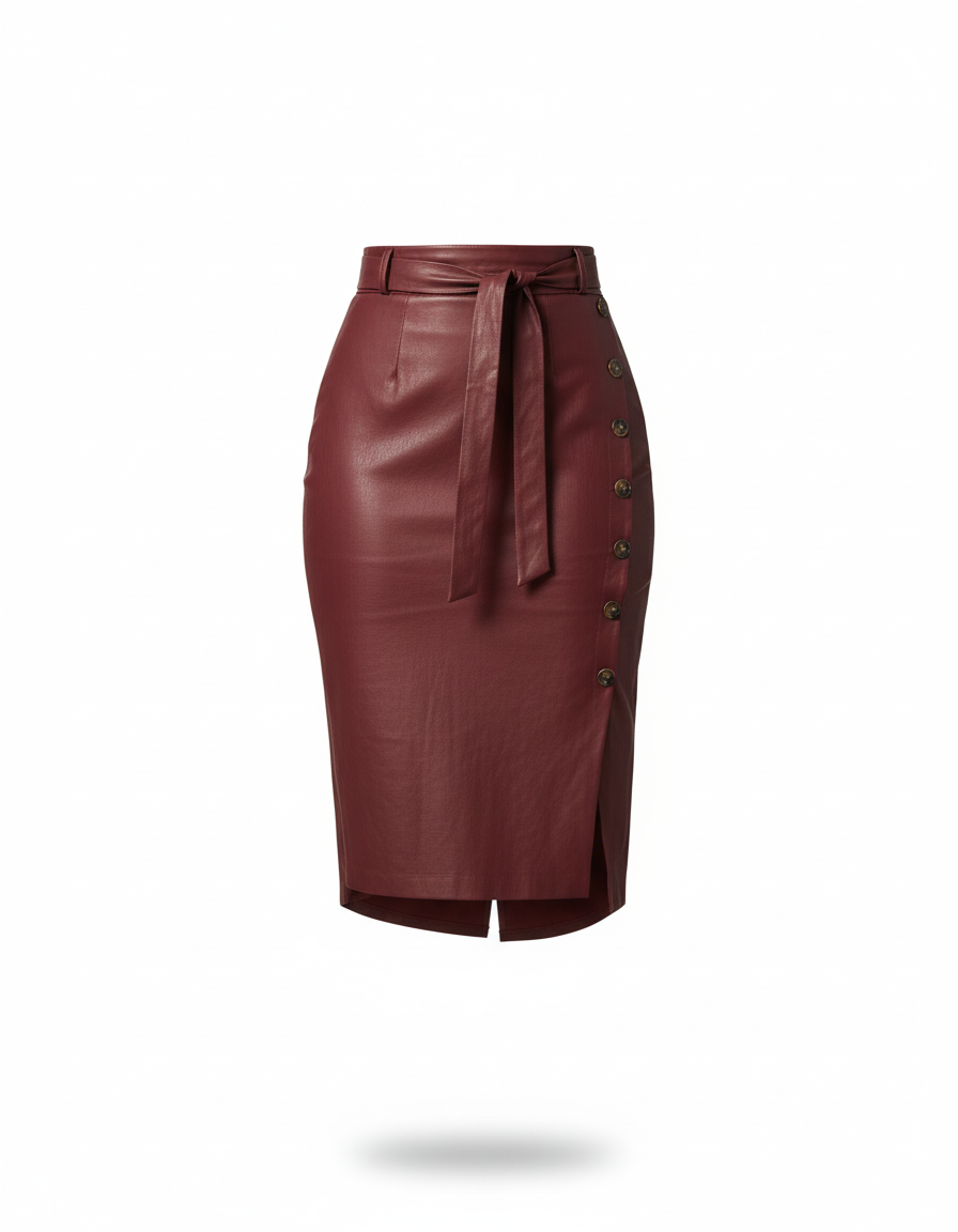 Jupe Midi Bordeaux Similicuir Chic – Caractéristiques