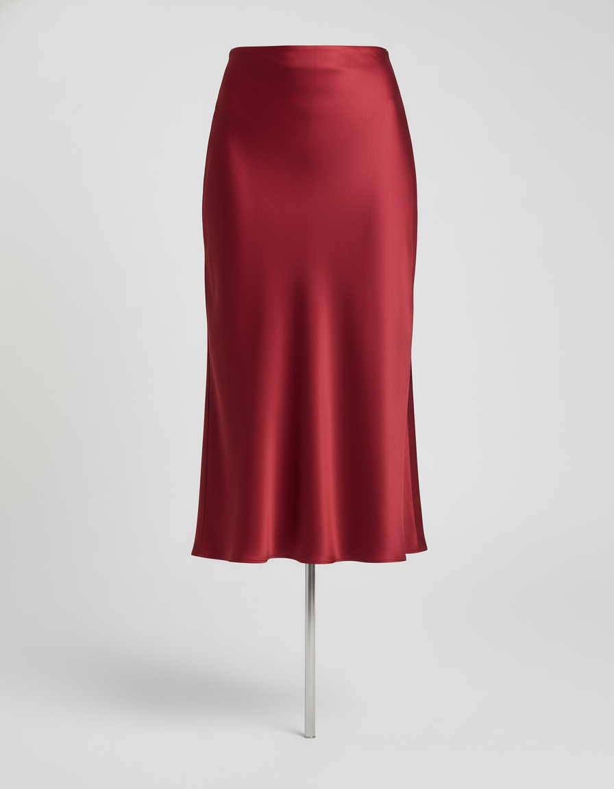 Incontournable de notre collection haut de gamme, la Jupe Midi Brique en satin bordeaux profond redéfinit l'élégance contemporaine. Son tissu luxueux glisse sur la peau, offrant un tombé évasé d'une fluidité remarquable qui épouse et sublime la silhouette. Conçue pour une aisance absolue, elle garantit une liberté de mouvement totale, vous invitant à vous déplacer avec grâce et confiance, que ce soit pour une soirée cocktail ou un événement plus formel.
