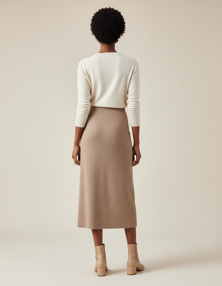 Jupe Midi Camel Tricotée Élégante : L'Art de l'Allure Sans Effort