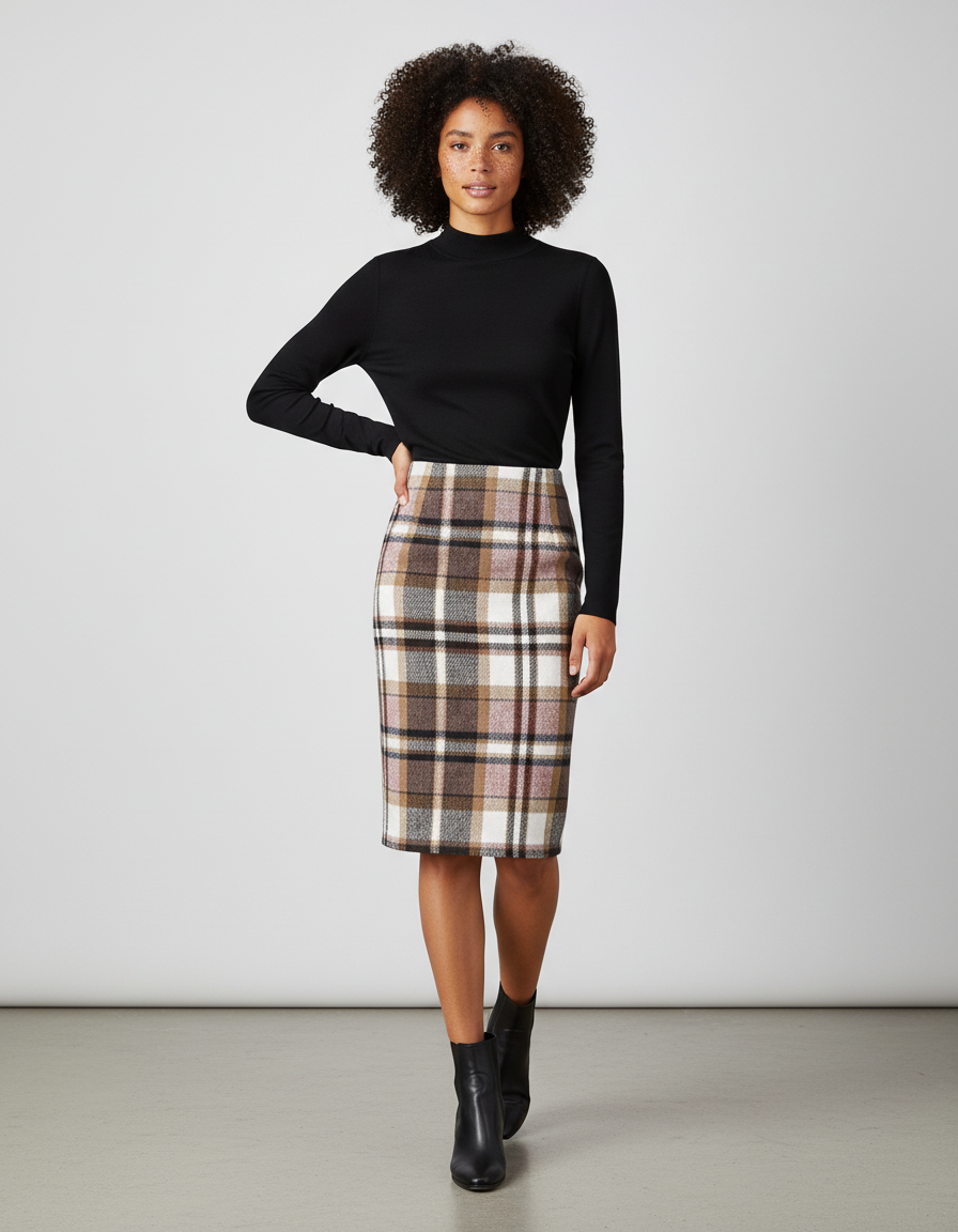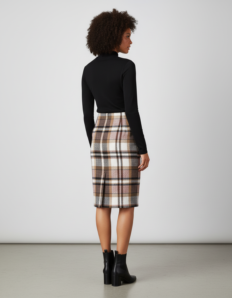L'Élégance Intemporelle : Votre Jupe Midi Carreaux en Laine Authentique