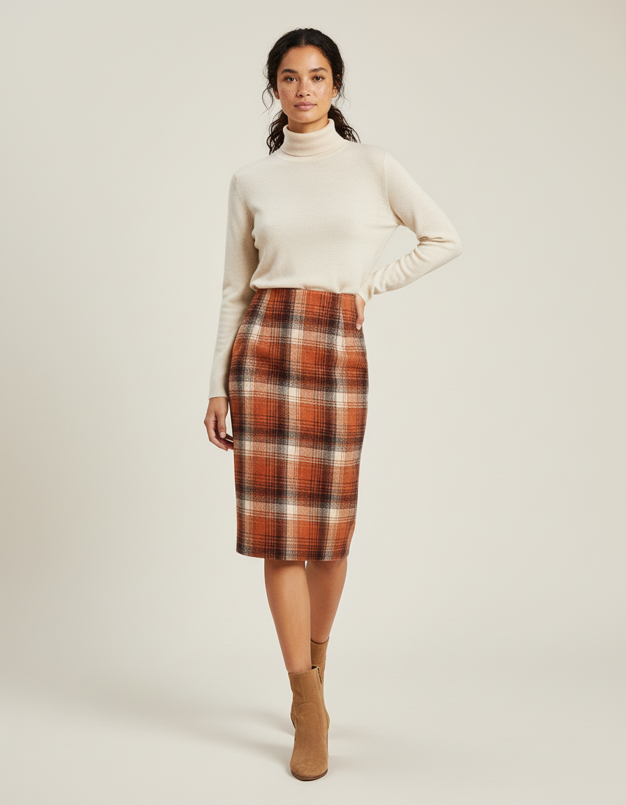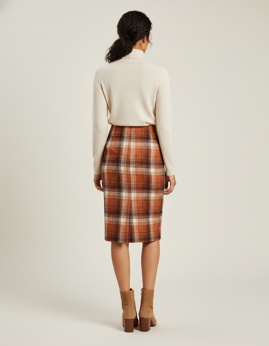 Usage de la Jupe Midi Carreaux Laine Élégante classique