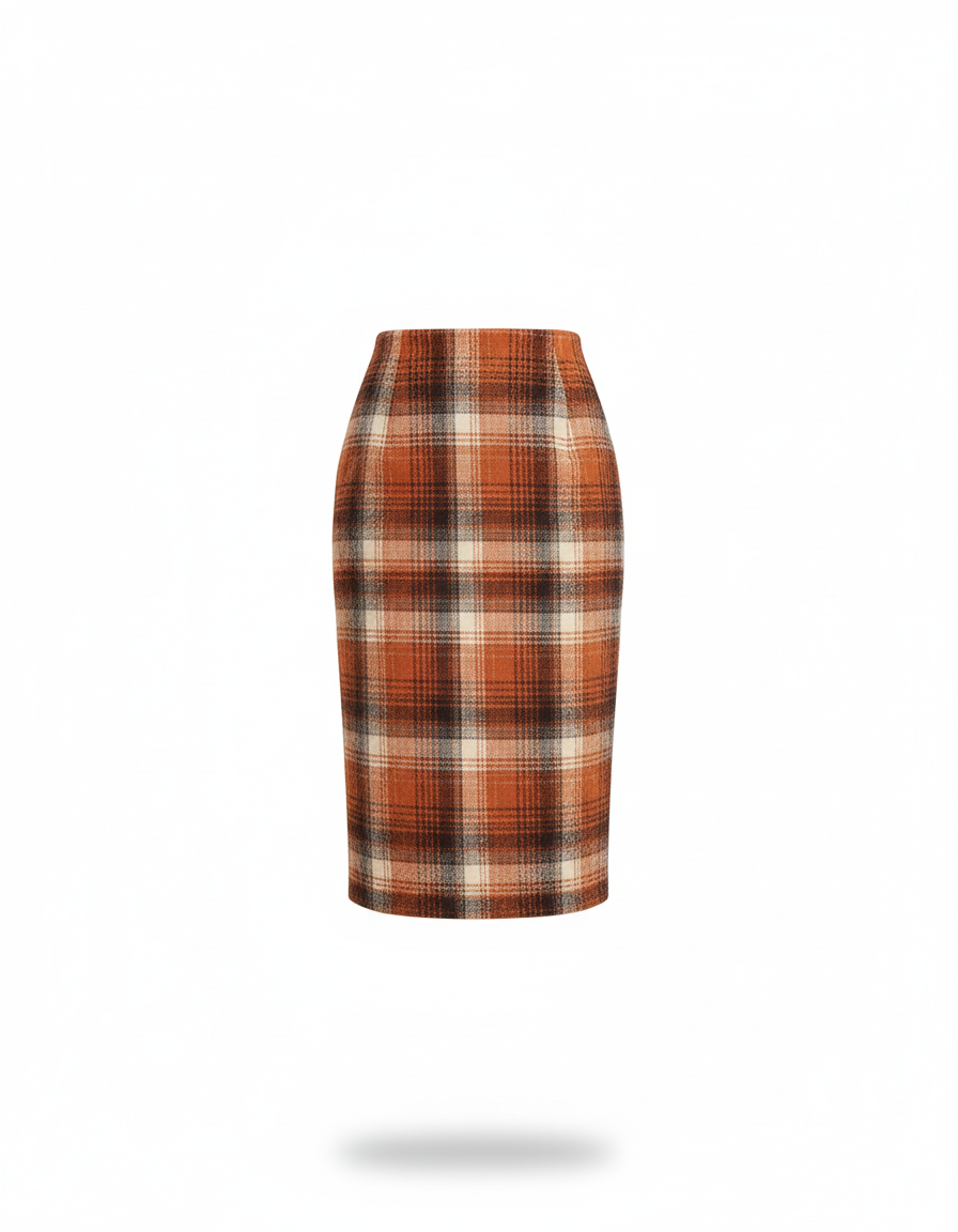 Son motif à carreaux, richement nuancé dans des tons terreux et chauds, est soigneusement tissé dans une laine premium, offrant une texture douce et un tombé parfait. Loin des tendances éphémères, sa coupe crayon classique est revisitée par une modernité discrète, garantissant une silhouette élancée et sophistiquée. Chaque détail a été pensé pour vous offrir une jupe qui non seulement se distingue par son esthétique unique, mais aussi par sa durabilité et son confort exceptionnel, faisant d'elle un investissement judicieux pour votre garde-robe.