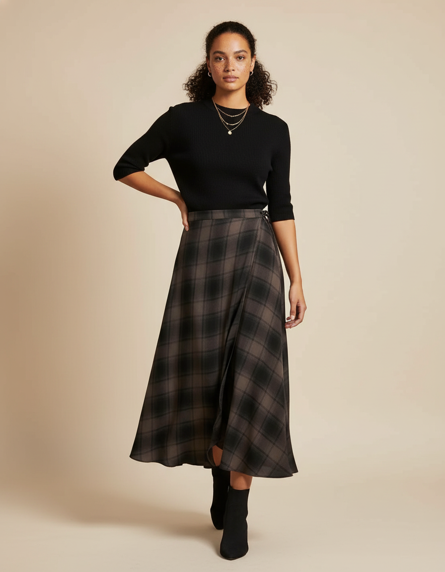 Jupe Midi Carreaux Portefeuille : L'Élégance Discrète et Moderne.