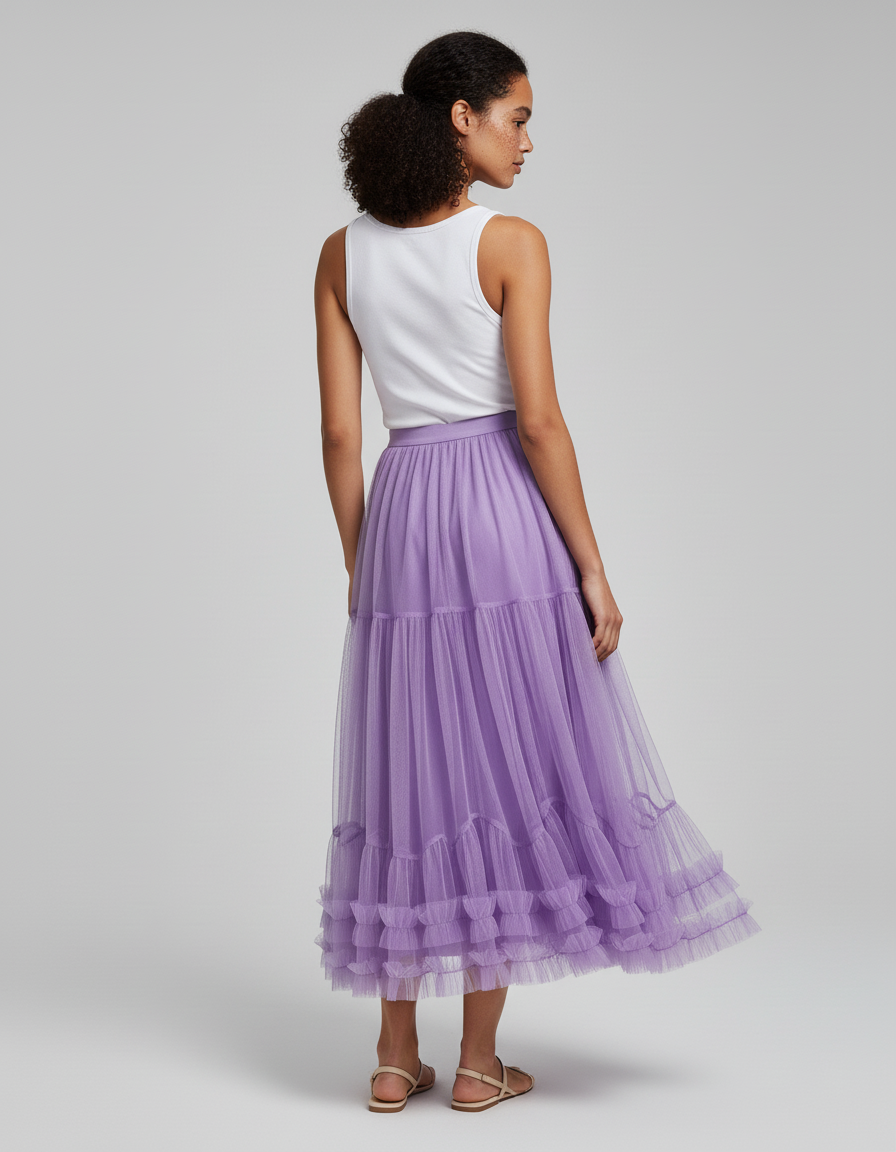 La Jupe Midi Colorée : Éclat Romantique en Tulle Violet