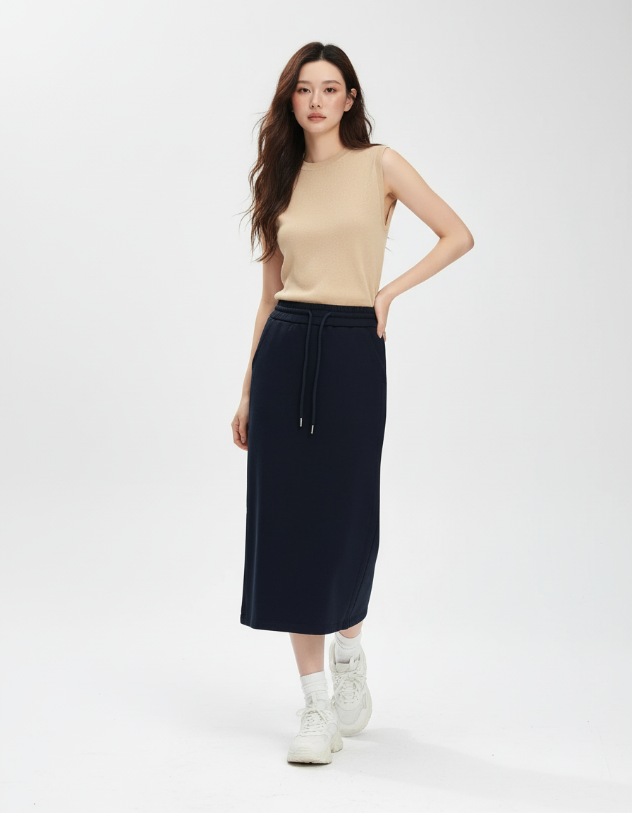 Jupe Midi Cordon Bleu Marine : Le Luxe Décontracté Réinventé