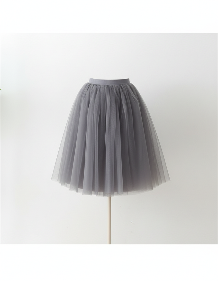 La Jupe Midi Corolle en tulle gris est votre alliée parfaite pour toutes les occasions où l'élégance et la délicatesse sont de mise. Idéale pour un rendez-vous galant, elle se marie à merveille avec un top ajusté et des talons pour une silhouette raffinée et romantique, comme celle de notre modèle. Pour une sortie plus décontractée mais toujours chic, associez-la à un pull en maille fine ou un chemisier fluide, et des bottines ou des baskets épurées. Son coloris gris intemporel offre une toile de fond sophistiquée, permettant de jouer avec des accessoires colorés ou des nuances pastel pour créer des looks variés et toujours impeccables.
