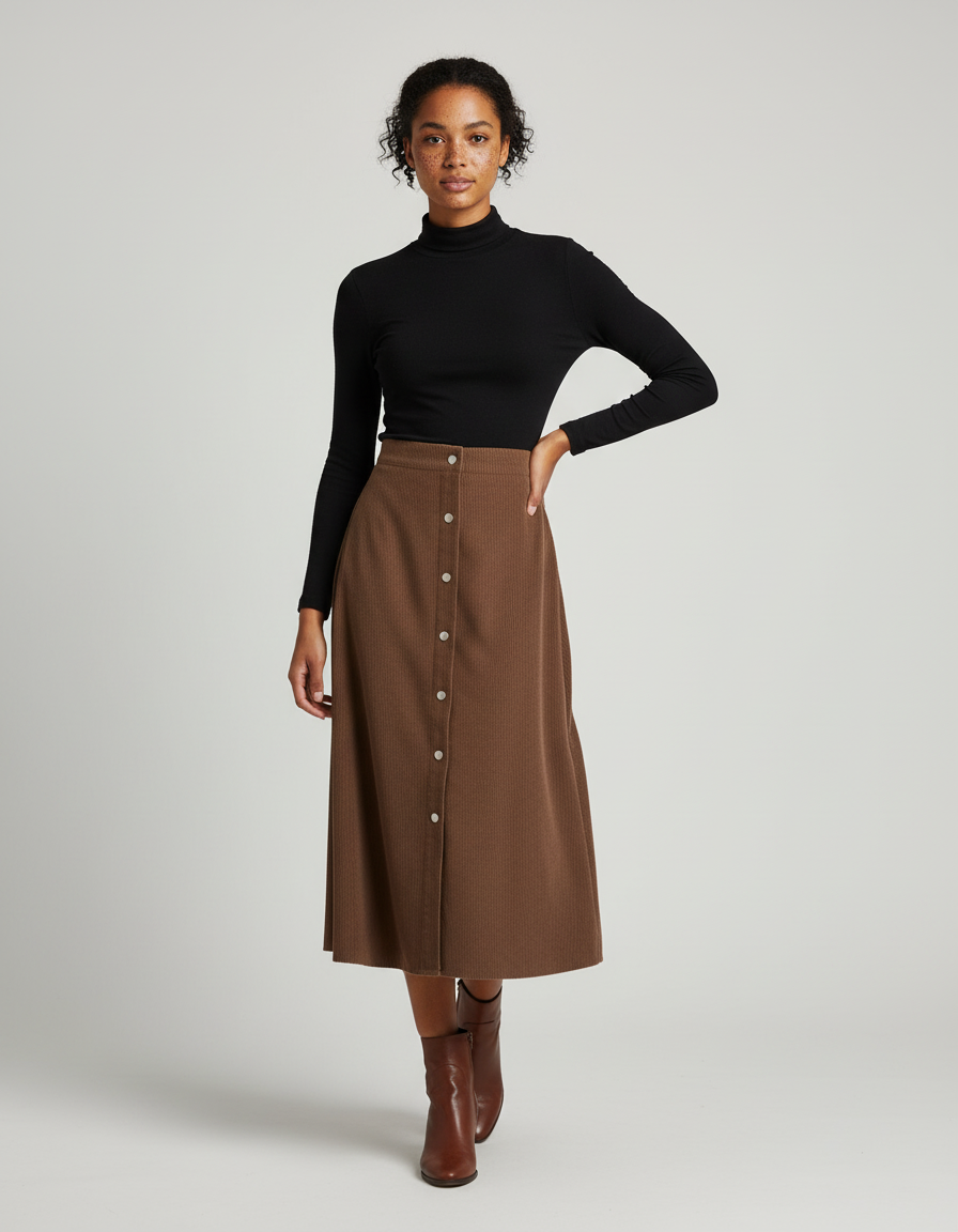La Jupe Midi Côtelée Marron Chic : L'Élégance au Quotidien