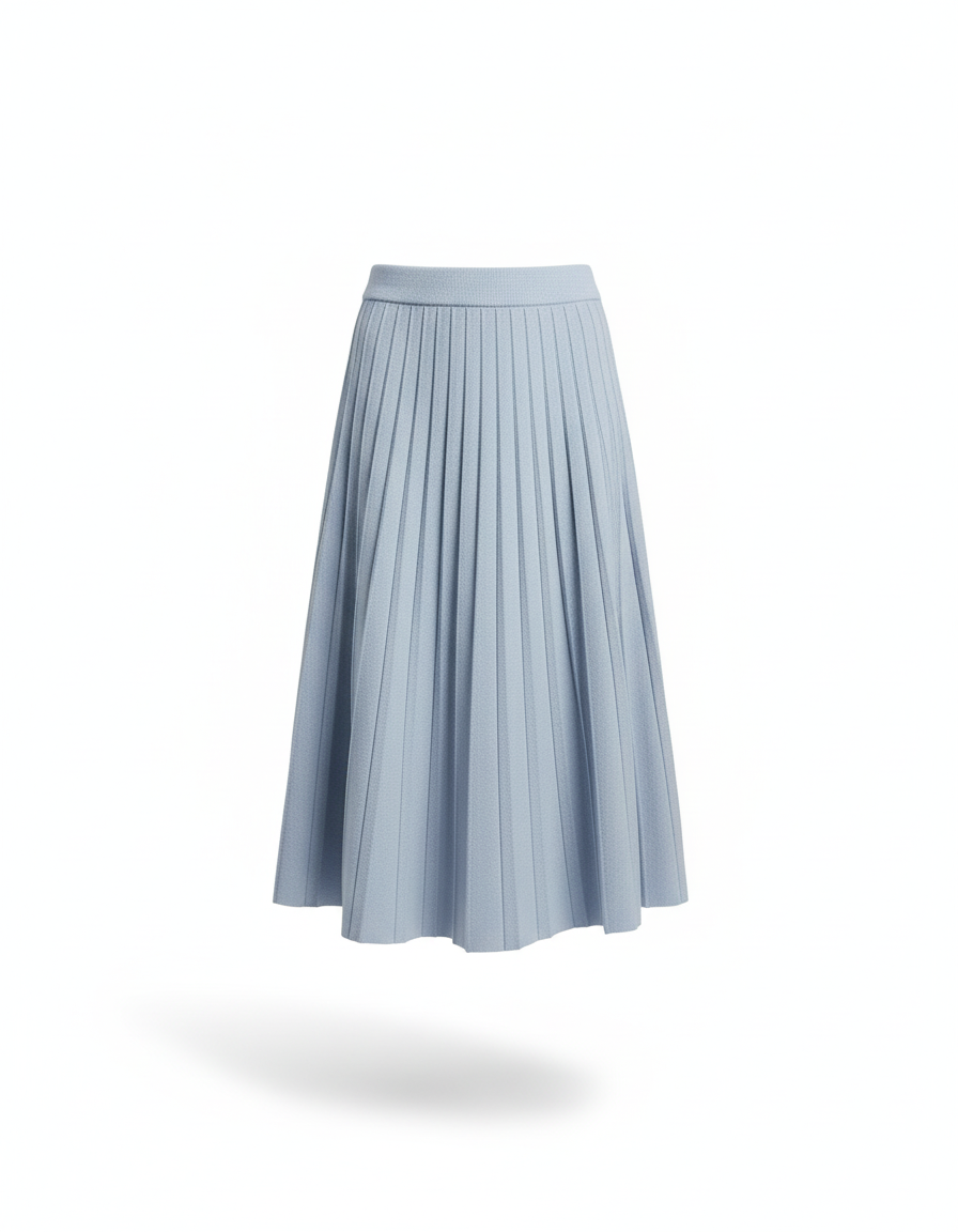 Adoptez une allure sophistiquée sans effort avec la Jupe Midi Couture, une pièce maîtresse qui incarne le luxe moderne et le confort absolu. Conçue dans une maille plissée d'une douceur exquise, sa teinte bleu ciel est une invitation à la sérénité et à l'élégance discrète. Chaque pli est méticuleusement travaillé pour offrir un mouvement fluide et une silhouette impeccable, vous enveloppant d'une grâce naturelle à chaque pas. C'est la jupe idéale pour la femme contemporaine qui exige une garde-robe alliant esthétisme raffiné et bien-être au quotidien, parfaite pour une journée au bureau comme pour un événement spécial.