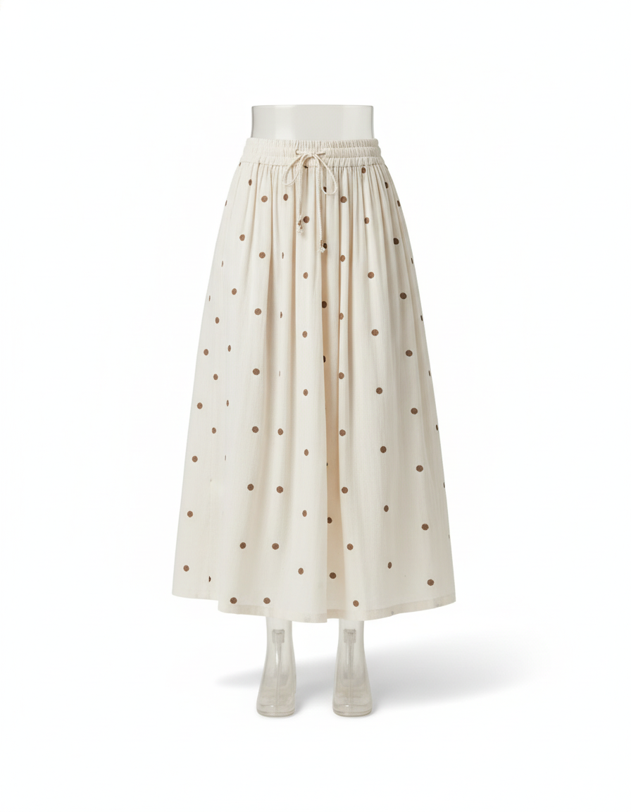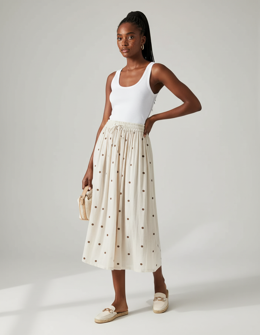 Jupe Midi Crème Pois Fluide : L'Élégance Décontractée Réinventée