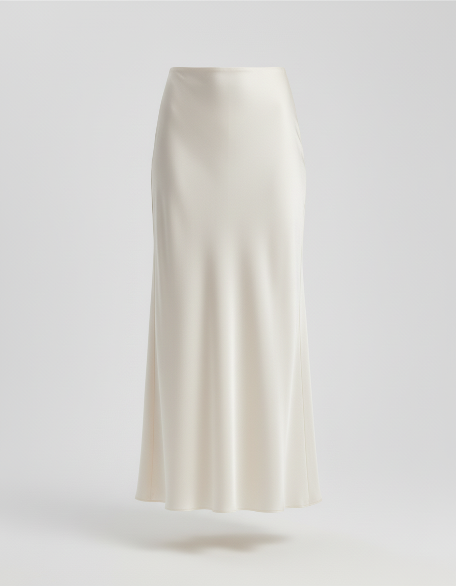La Jupe Midi Crème Satinée Élégante : L'Éclat Discret de Votre Quotidien.