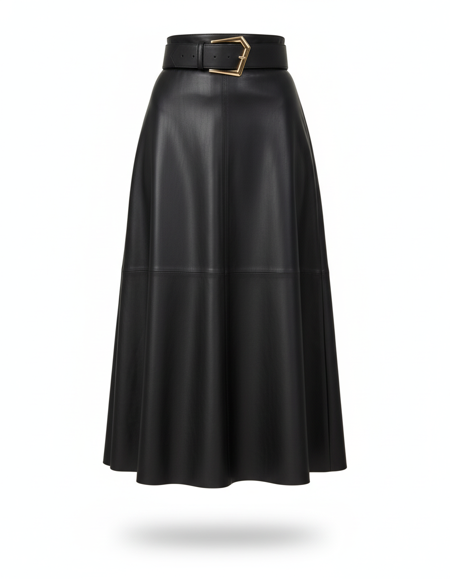 L'Élégance Intemporelle Réinventée : Jupe Midi Cuir Noir