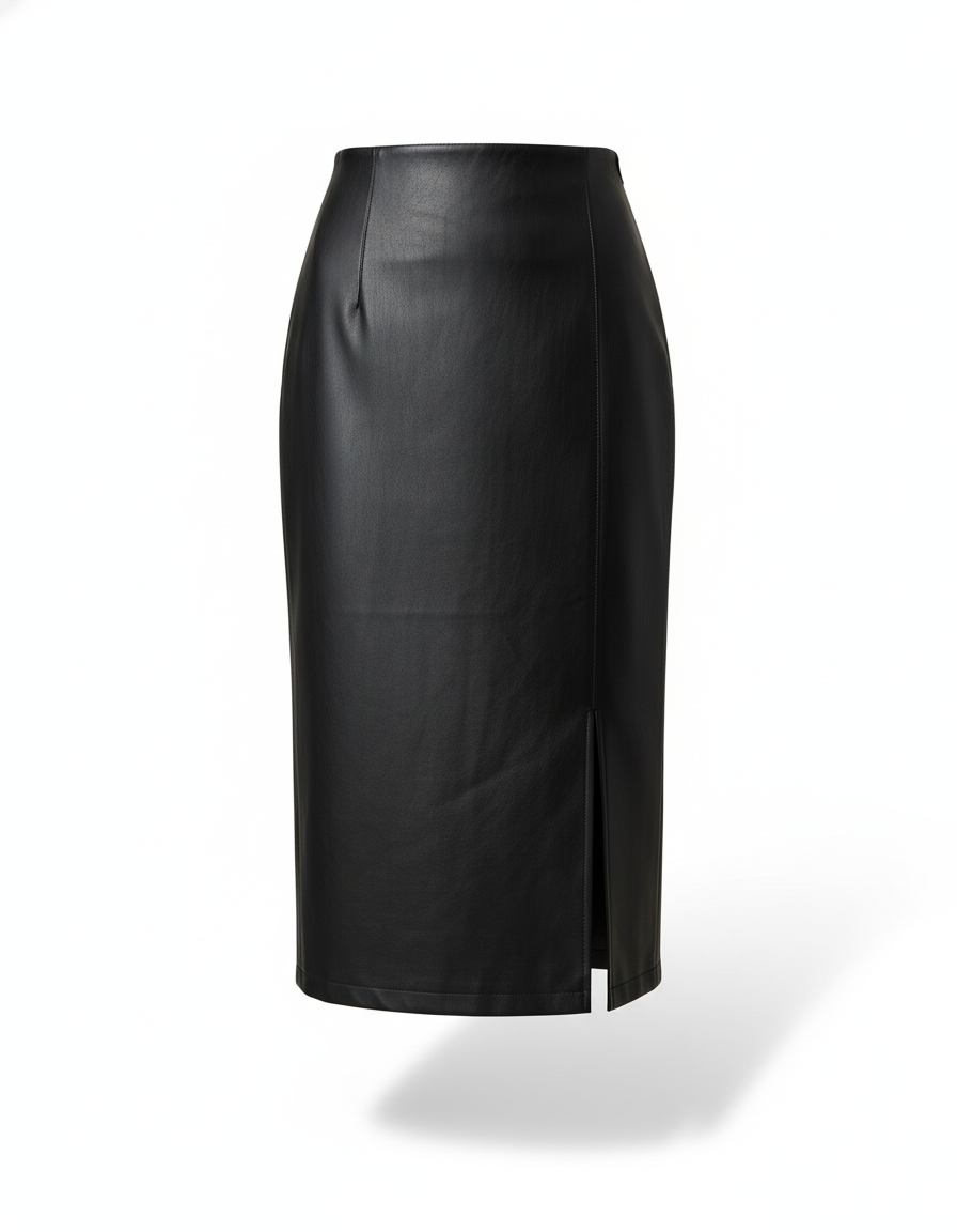 La Jupe Midi Fendue en Simili Cuir : L'Élégance Redéfinie