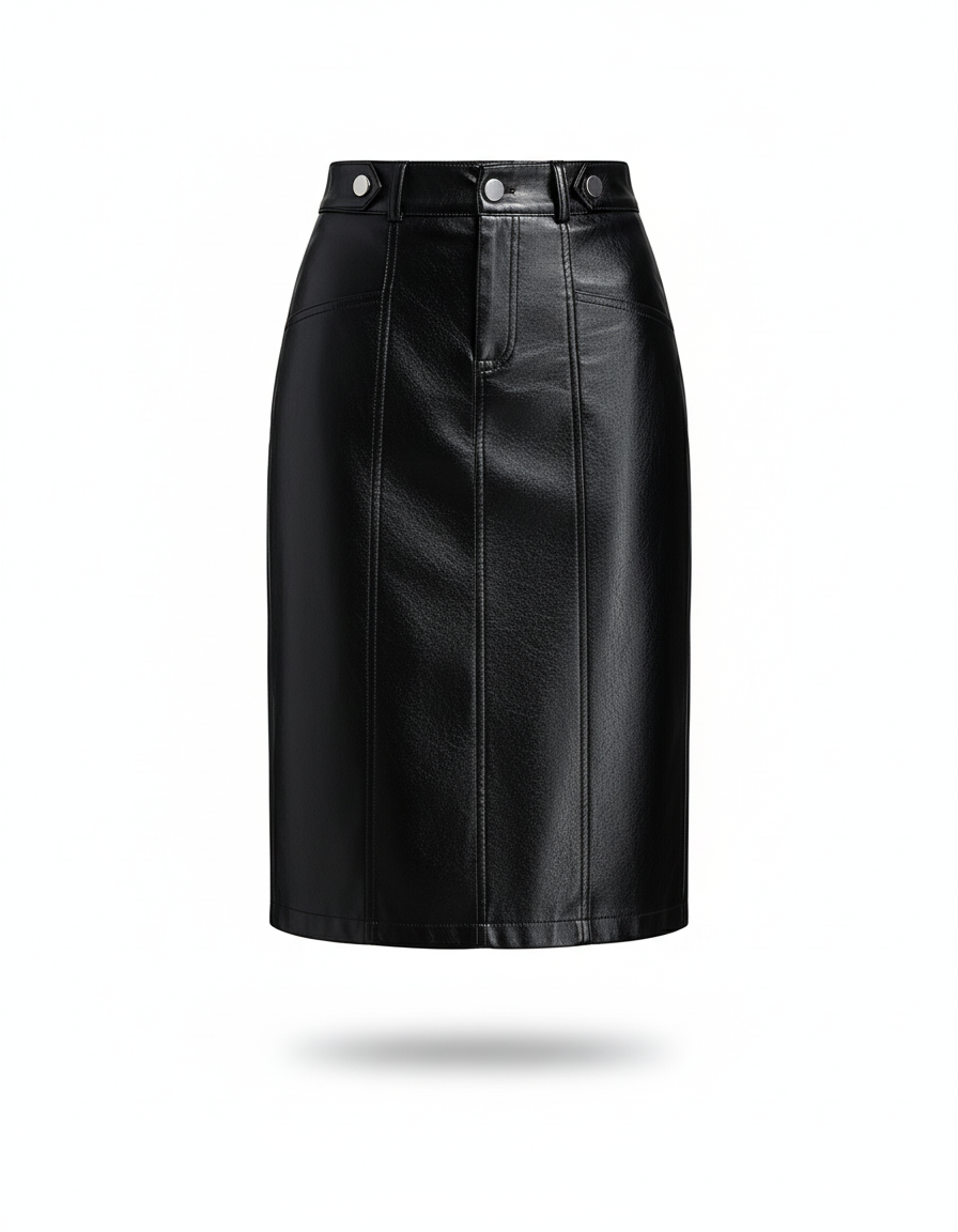 Jupe Midi Cuir Pu Noire Chic - Caractéristiques