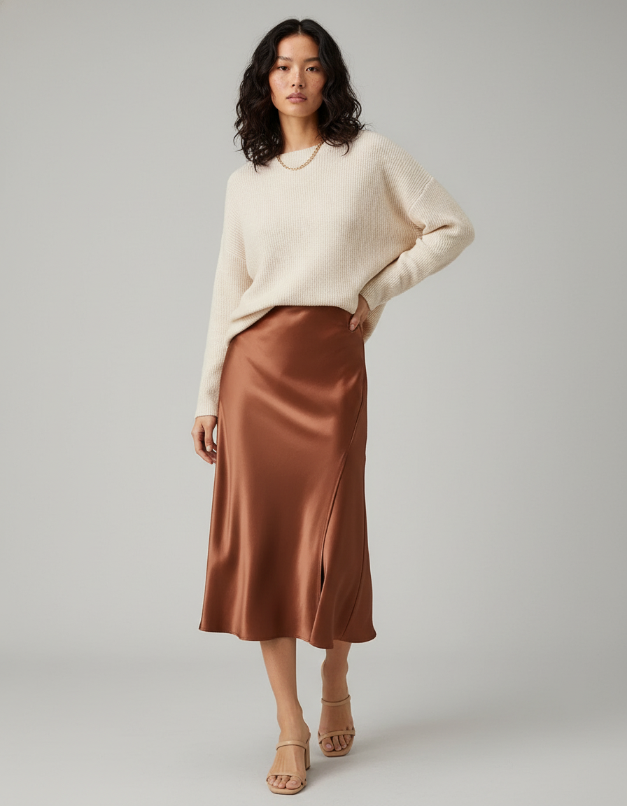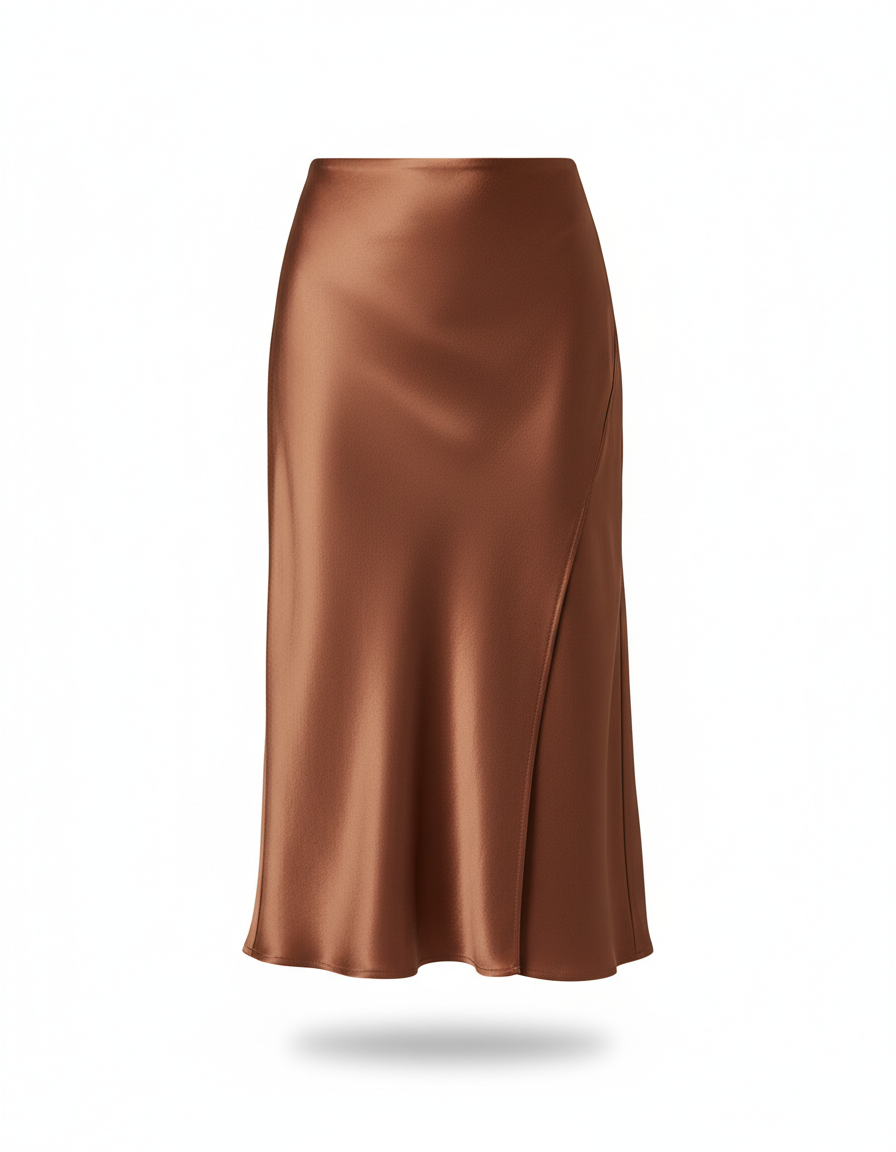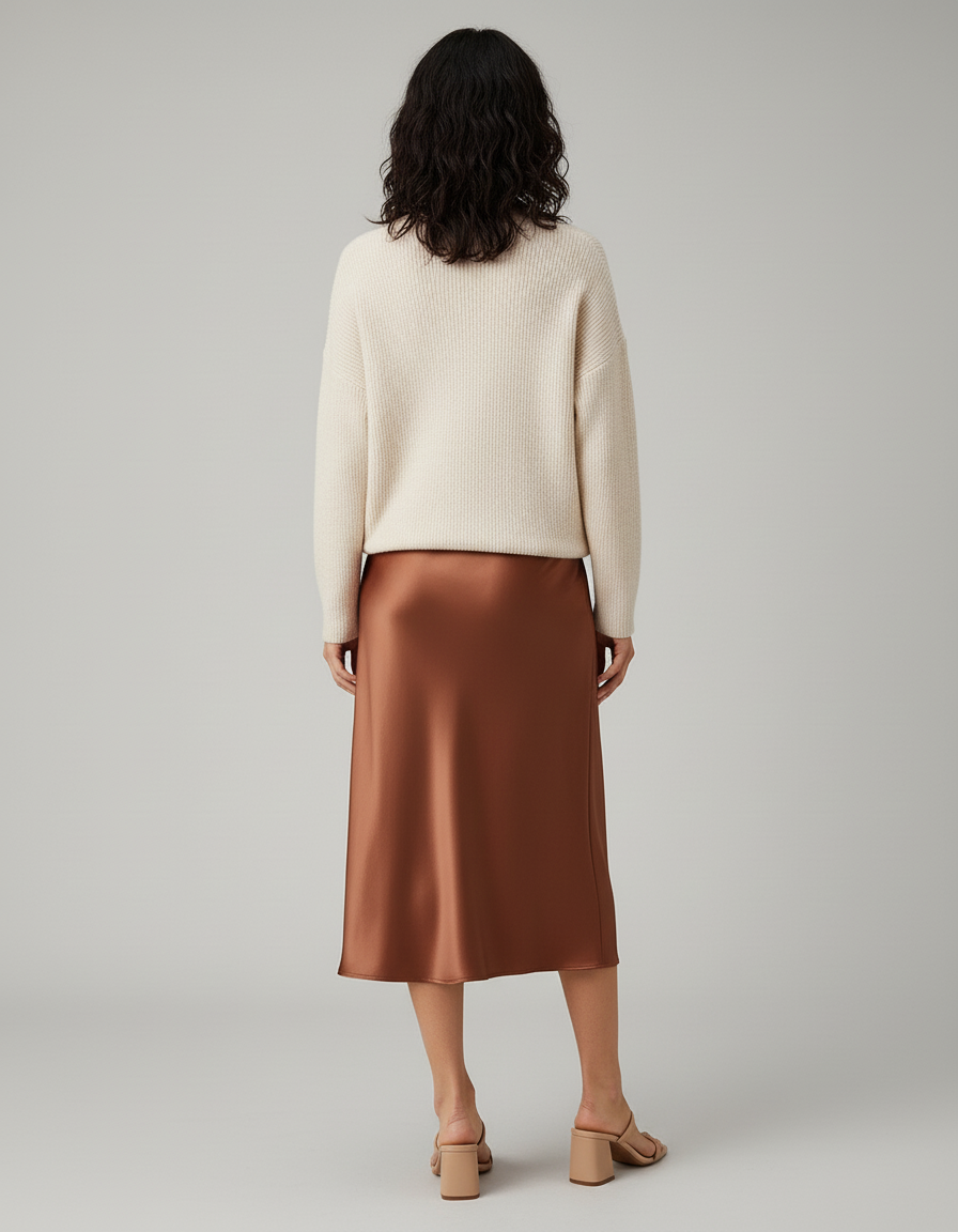 L'Élégance Fluide : Notre Jupe Midi Cuivrée Satinée