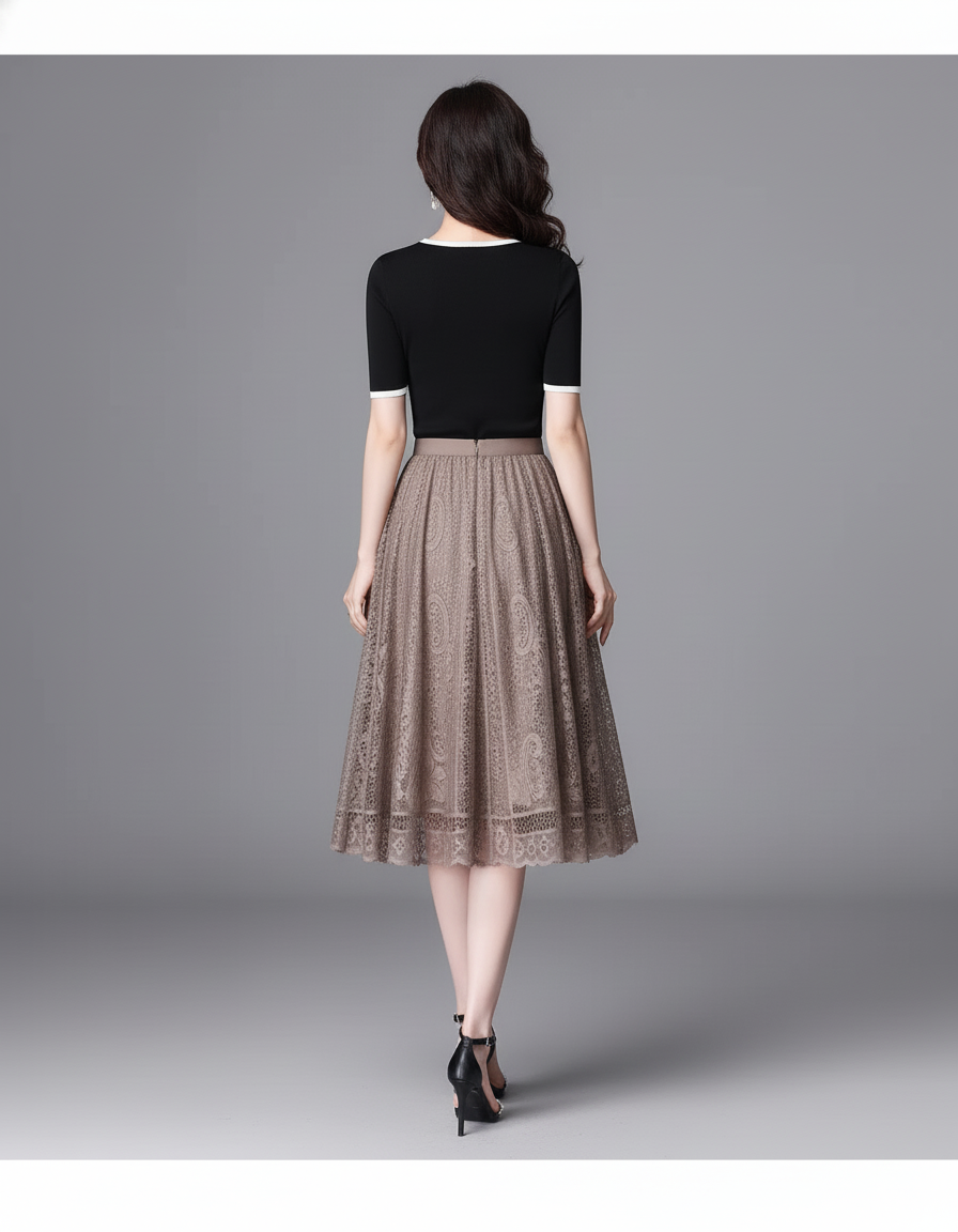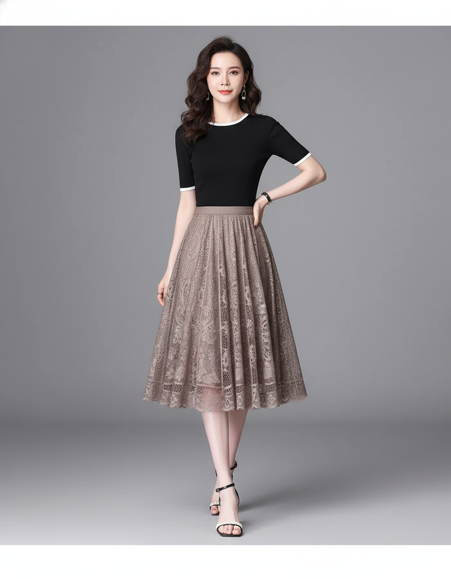La Jupe Midi Dentelle Plissée Élégante : L'Éclat Discret de Votre Style