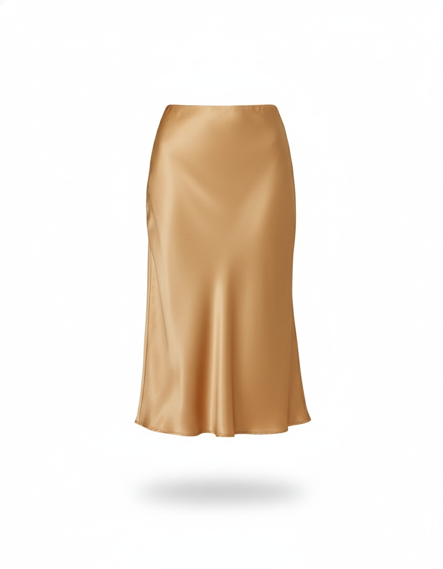Jupe Midi Dorée Satinée Chic : L'Élégance Fluide pour une Allure Inoubliable