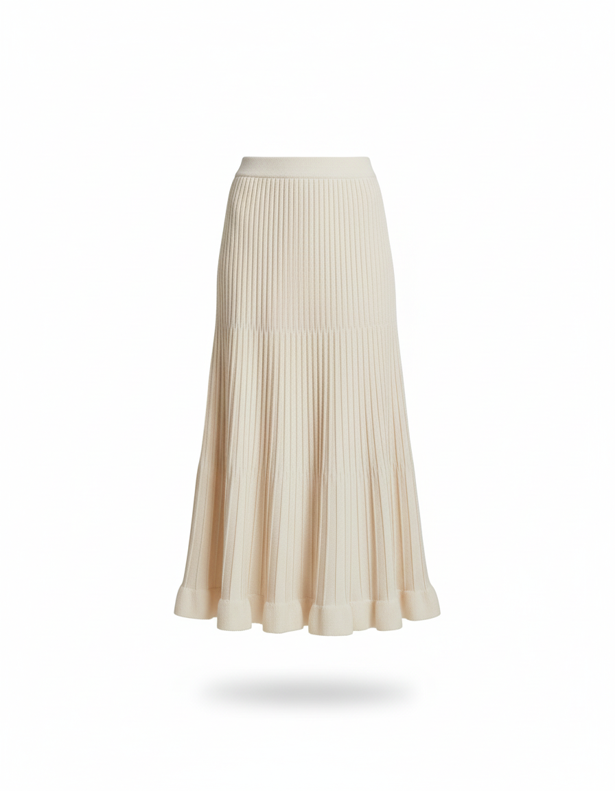 - Coupe midi plissée avec ourlet volanté.