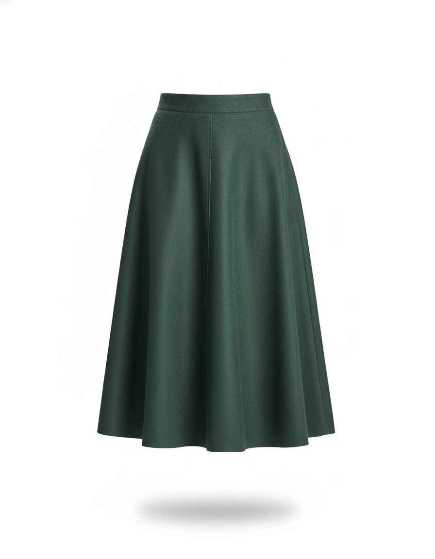 Façonnée dans une laine d'une qualité exceptionnelle, sa teinte verte profonde ajoute une touche de caractère et de distinction à votre style. Ce qui la différencie, c'est son artisanat méticuleux et sa matière respirante qui promet un confort optimal en toute saison, bien au-delà des jupes ordinaires. Sa taille haute flatteuse et sa longueur midi en font une pièce polyvalente, facile à associer avec des bottines pour un look décontracté-chic ou des escarpins pour une occasion spéciale. Un classique revisité, pensé pour durer et pour vous accompagner avec élégance.
