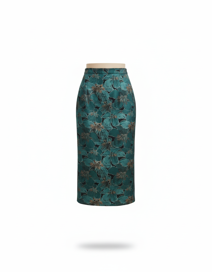Affirmez votre style avec la Jupe Midi Florale Verte Élégante, une pièce maîtresse qui transcende les tendances. Conçue pour la femme moderne qui ne transige pas sur l'élégance et la qualité, cette jupe droite en satin est une véritable célébration de la féminité raffinée. Son imprimé floral vert profond, riche en nuances, apporte une touche d'art et de sophistication à votre garde-robe. Idéale pour celles qui cherchent à captiver sans effort, elle vous assure une allure distinguée, que ce soit pour une réunion importante, un déjeuner chic ou un événement spécial. Elle incarne la confiance et l'assurance, vous permettant de briller en toute occasion.
