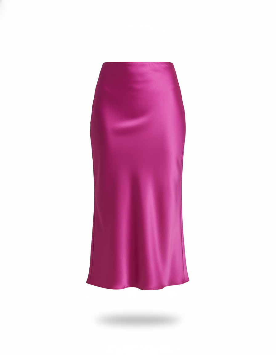 La Jupe Midi Fushia : L'Éclat du Satin pour une Élégance Sans Effort