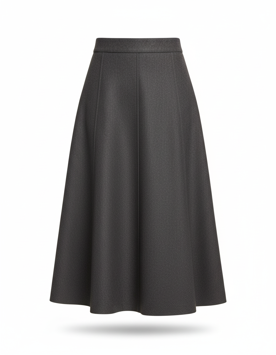 L'Élégance Intemporelle : Jupe Midi Évasée en Laine Grise