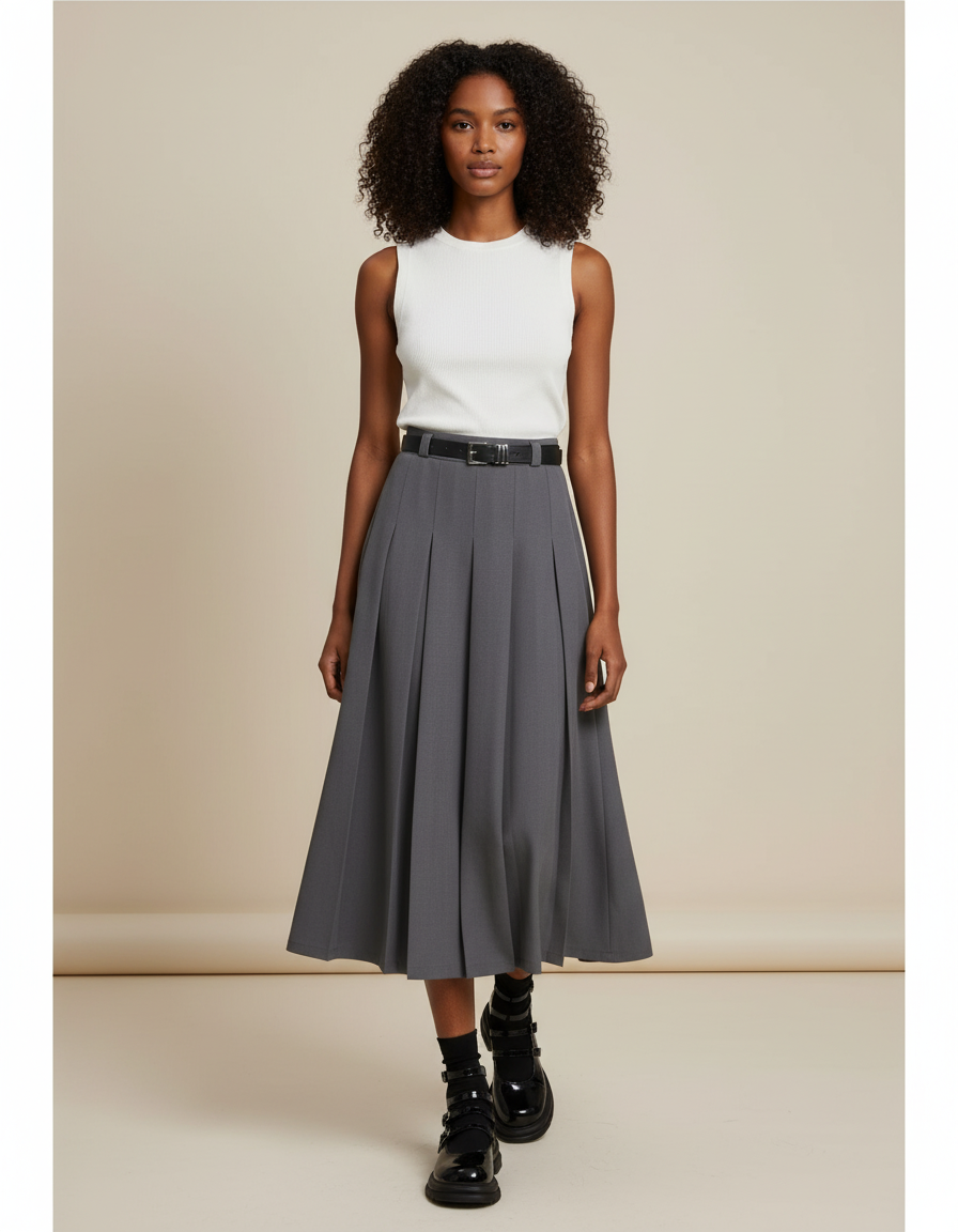 L'Élégance Redéfinie : Votre Jupe Midi Grise Plissée