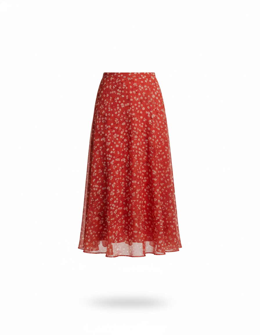 Notre jupe midi imprimée en voile rouge est une invitation à la légèreté et à l'élégance. Son motif floral délicat et sa coupe évasée insufflent une touche romantique à chaque tenue. Idéale pour vos escapades ensoleillées, elle se marie parfaitement avec un débardeur en lin et des sandales plates pour un look de vacances décontracté. Pour une allure plus sophistiquée en ville, associez-la à un chemisier en soie et des escarpins nude, sublimant ainsi son caractère haut de gamme.