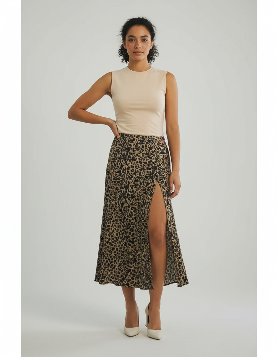 La Jupe Midi Imprimée Léopard Fendue : L'Élégance Audacieuse Redéfinie