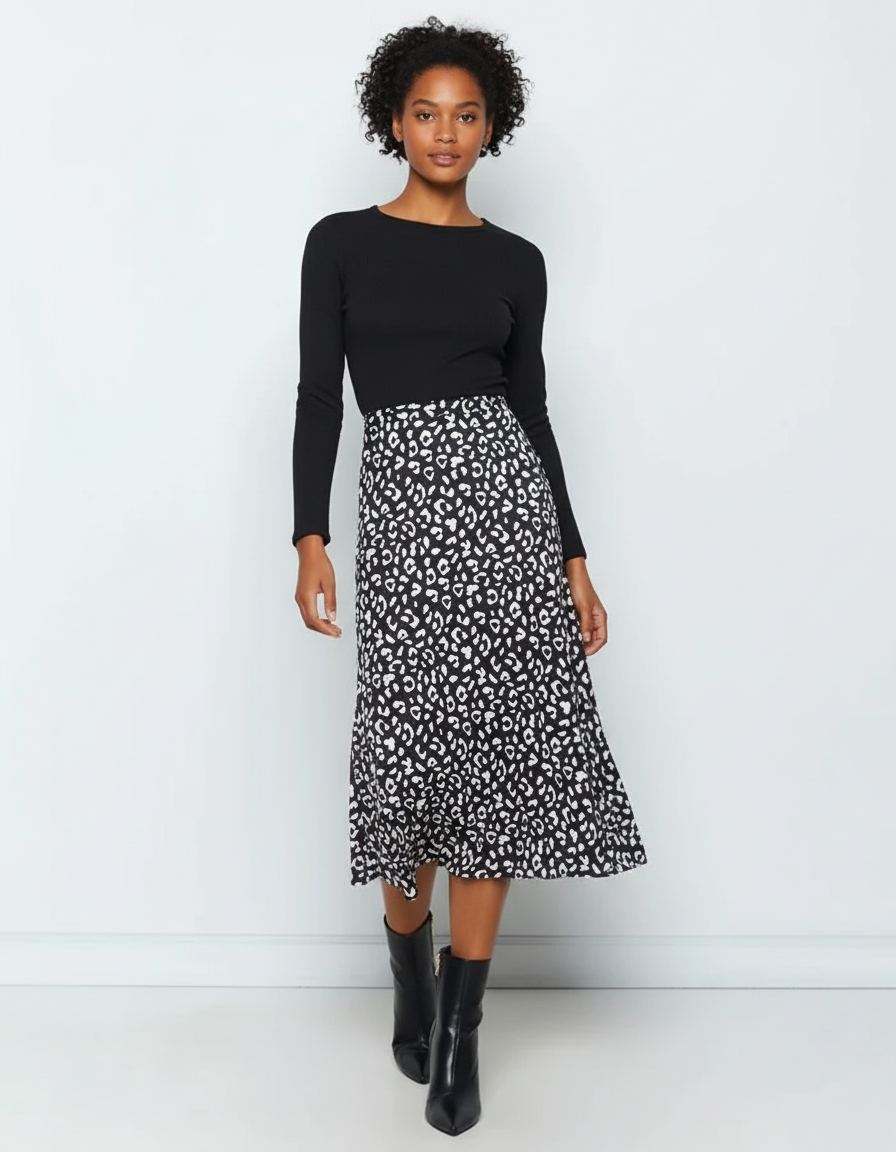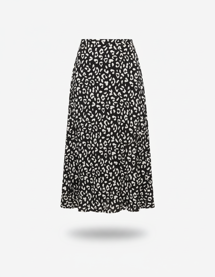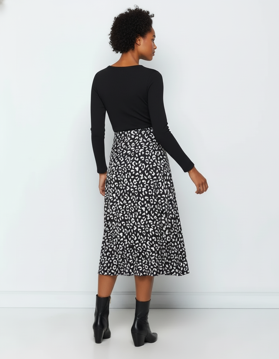 Jupe Midi Imprimée Léopard Fluide à motif noir et blanc