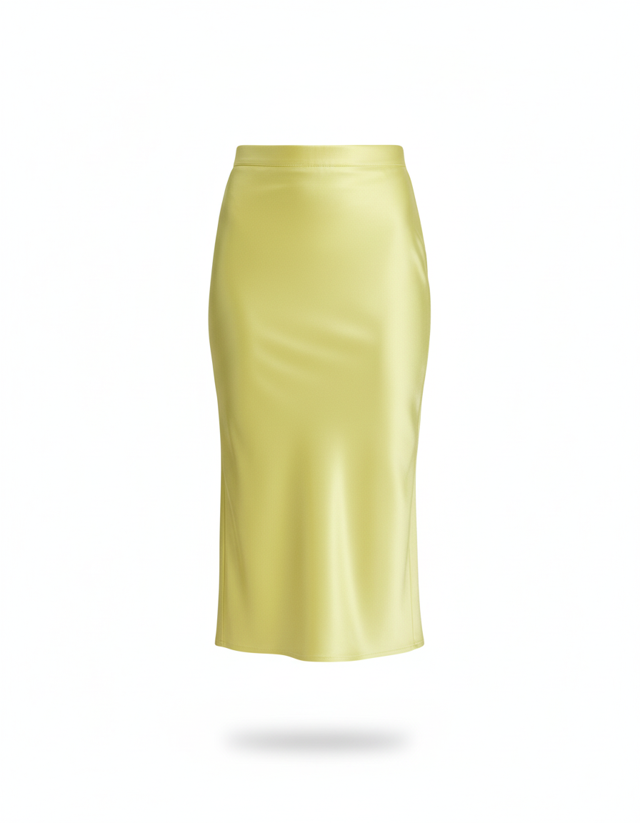 Ce qui distingue notre jupe, c'est son jaune solaire unique, parfaitement équilibré pour s'adapter à toutes les carnations, et son tombé impeccable. Le satin, d'une qualité exceptionnelle, capte et reflète la lumière avec une fluidité hypnotisante, créant un mouvement gracieux à chaque pas. Sa coupe droite, à la fois intemporelle et résolument contemporaine, épouse la silhouette sans contrainte, promettant une élégance sans effort. Un véritable investissement dans votre garde-robe de luxe, cette jupe est la pièce maîtresse qui vous assure une distinction subtile et un style inimitable, du bureau au cocktail.