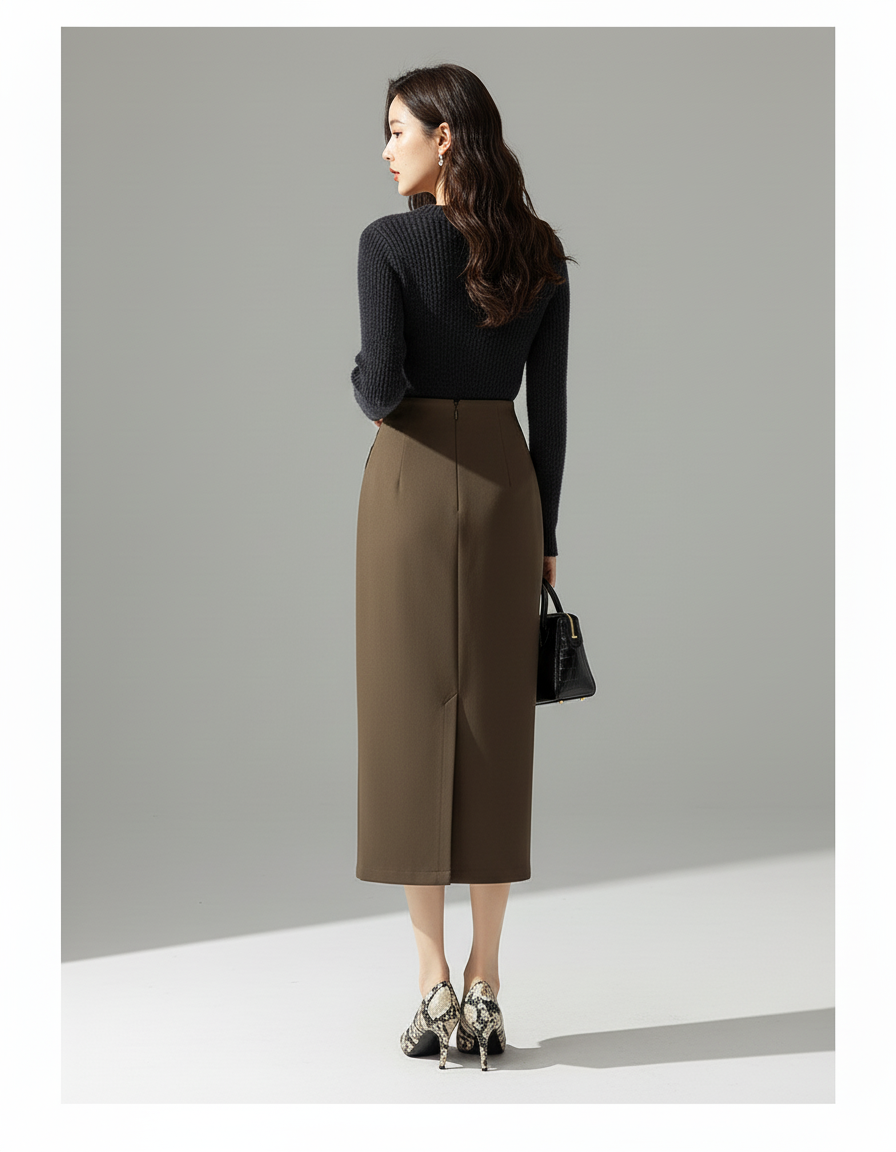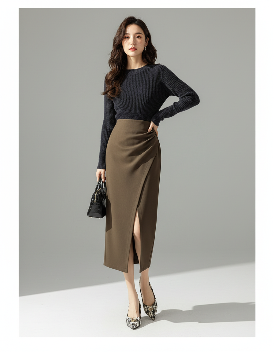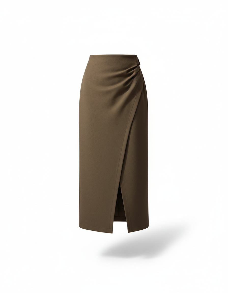 Jupe Midi Kaki Fendue Élégante : L'Essence du Chic Contemporain