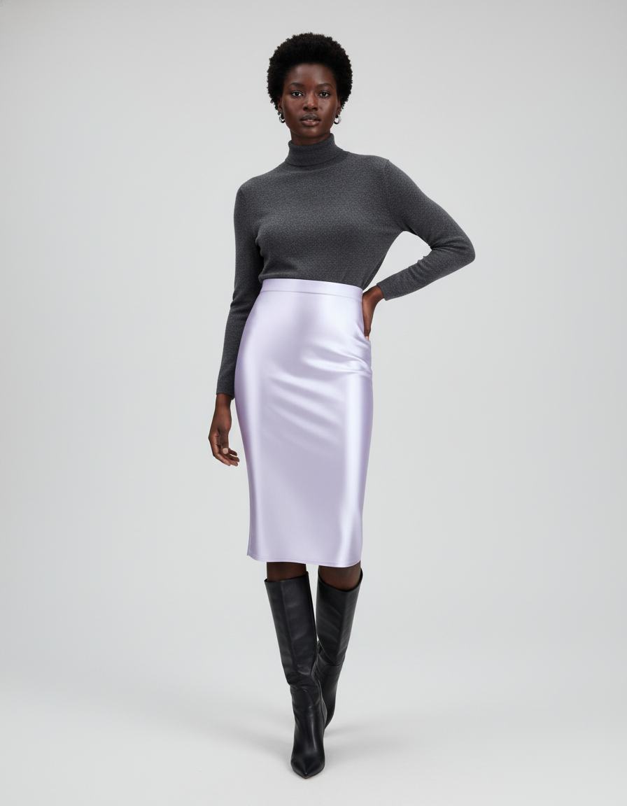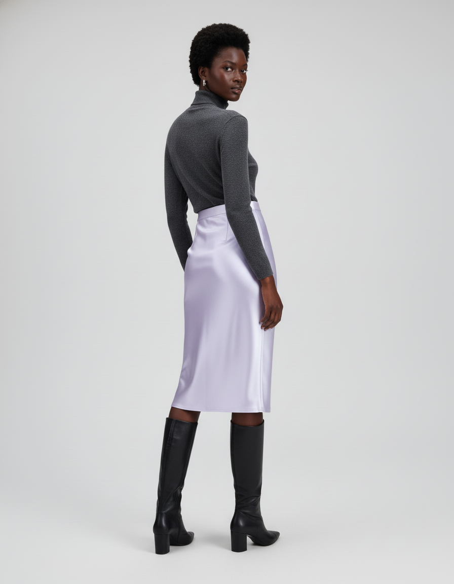 La Jupe Midi Lavande Satinée Élégante : Votre Pièce Maîtresse Raffinée