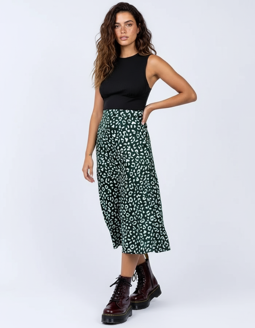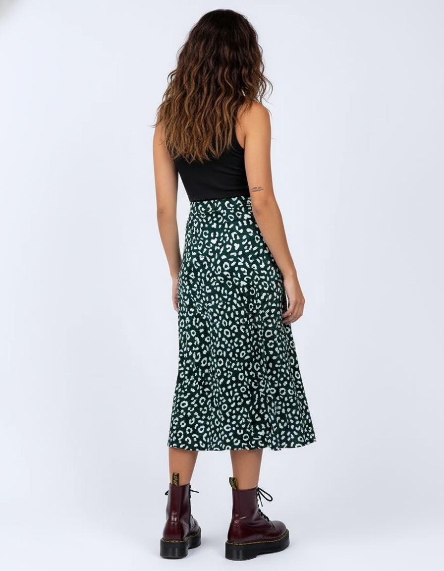 Jupe Midi Léopard Verte Élégante : L'Éclat d'une Allure Inoubliable