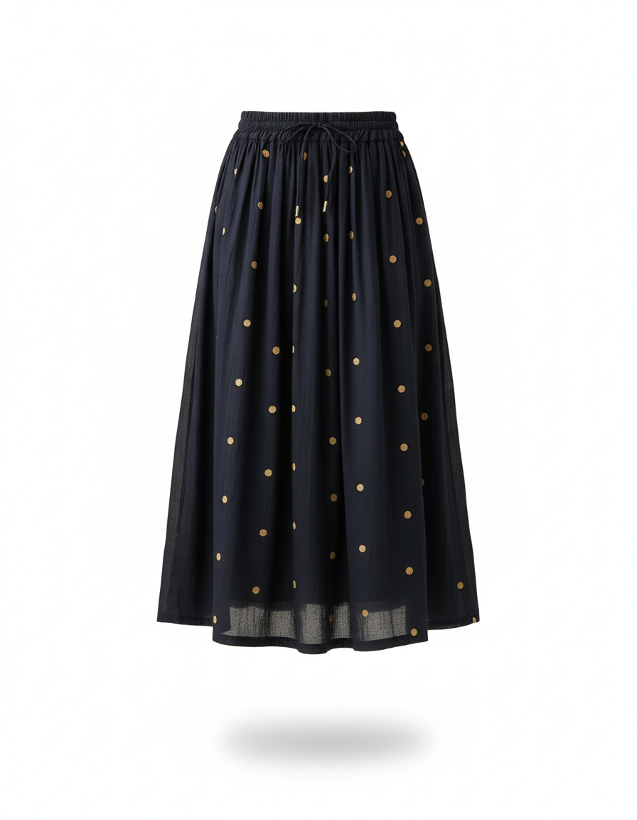 Jupe Midi Marine Pois Fluide : L'Élégance Aérienne Réinventée