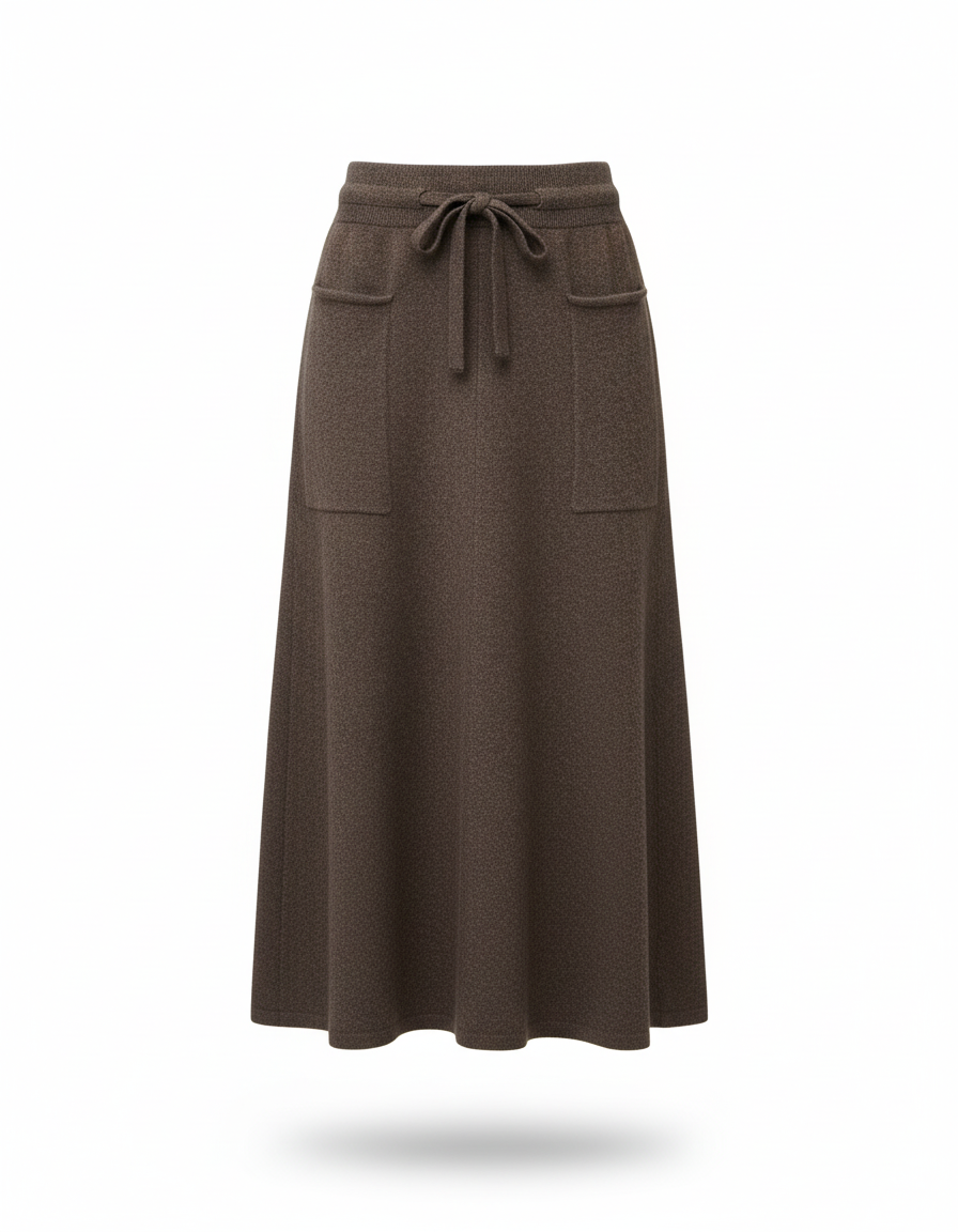 Jupe Midi Marron A-Line Chic JIANGSHAN avec Poches et Cordon de Serrage
