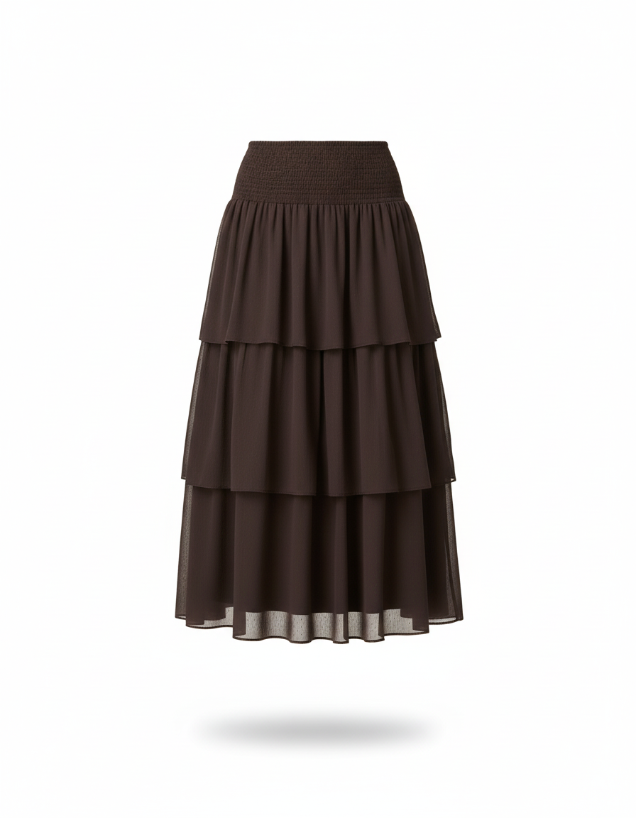 Jupe Midi Marron À Volants Chic : L'Élégance Fluide Redéfinie