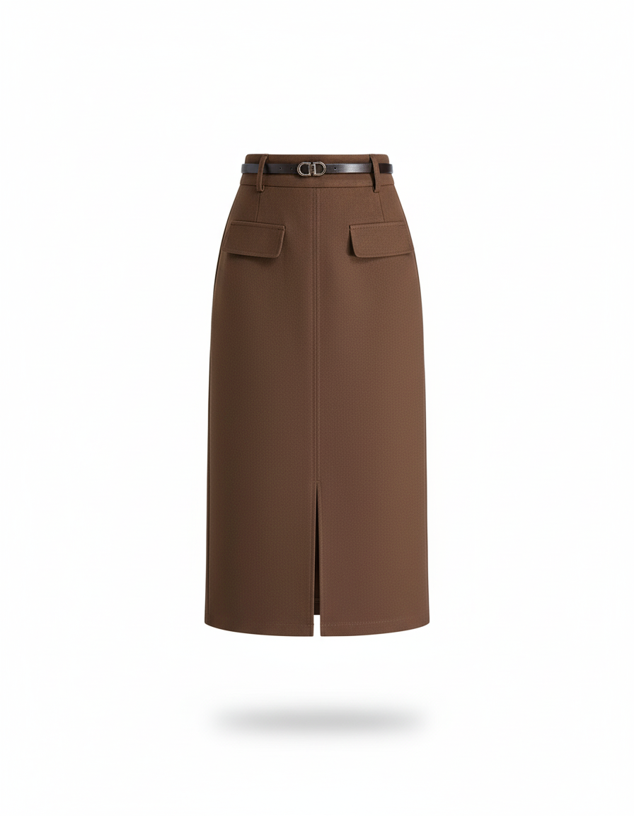 L'Élégance Redéfinie : Jupe Midi Droite en Laine Marron