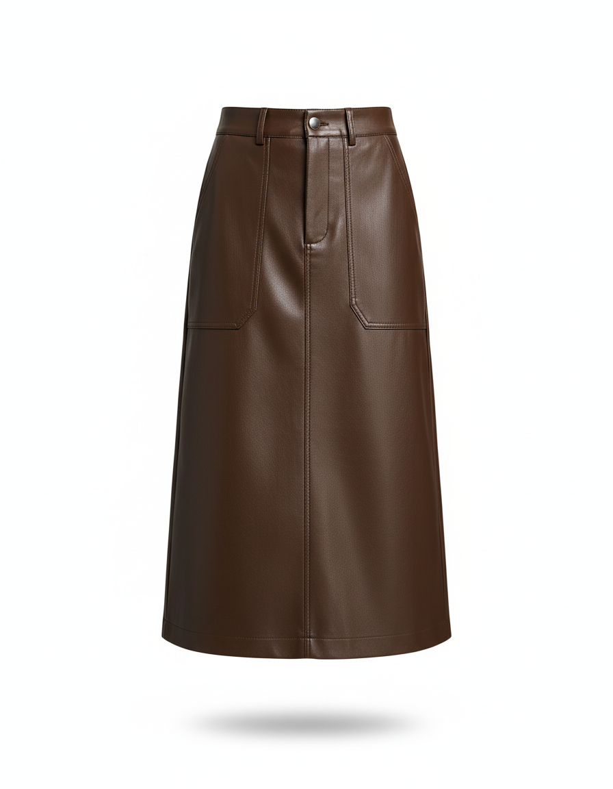 Jupe Midi Marron Simili Cuir Décontractée : L'Élégance Sans Effort