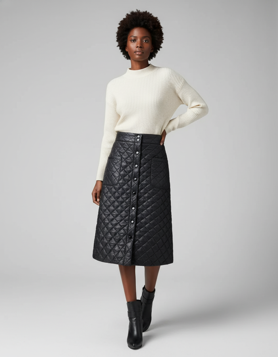 La Jupe Midi Matelassée Noire Chaude : Élégance et Versatilité au Quotidien